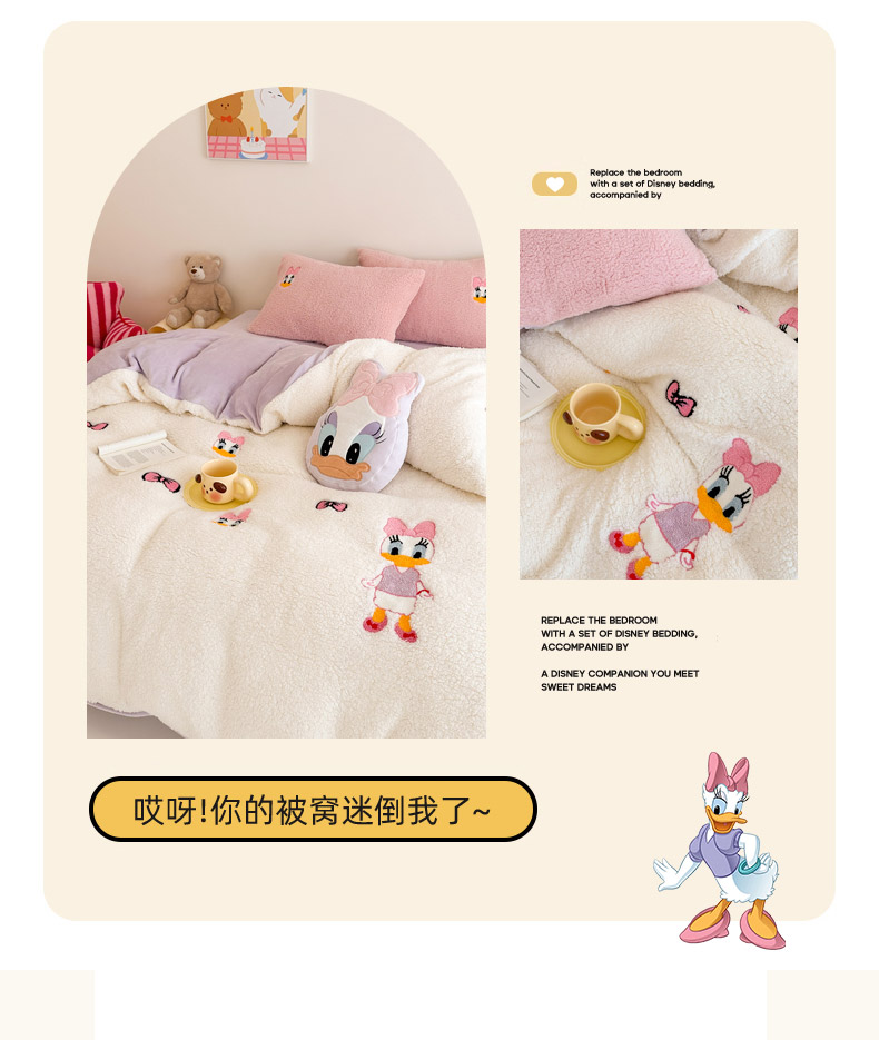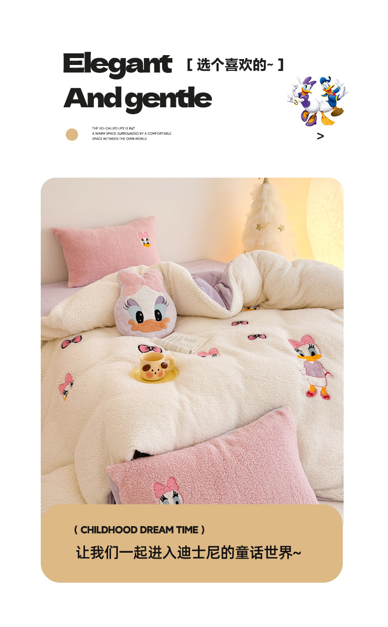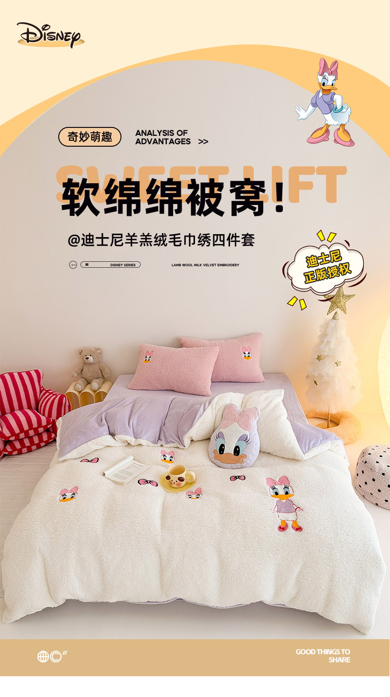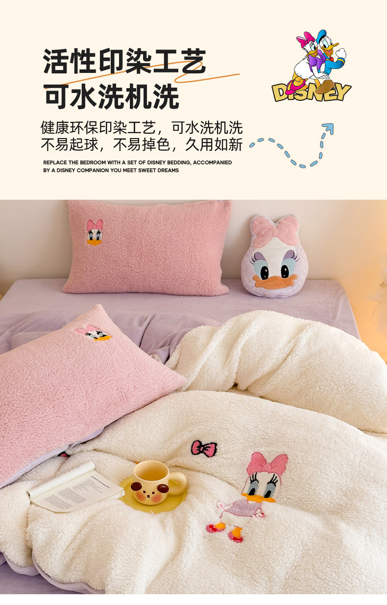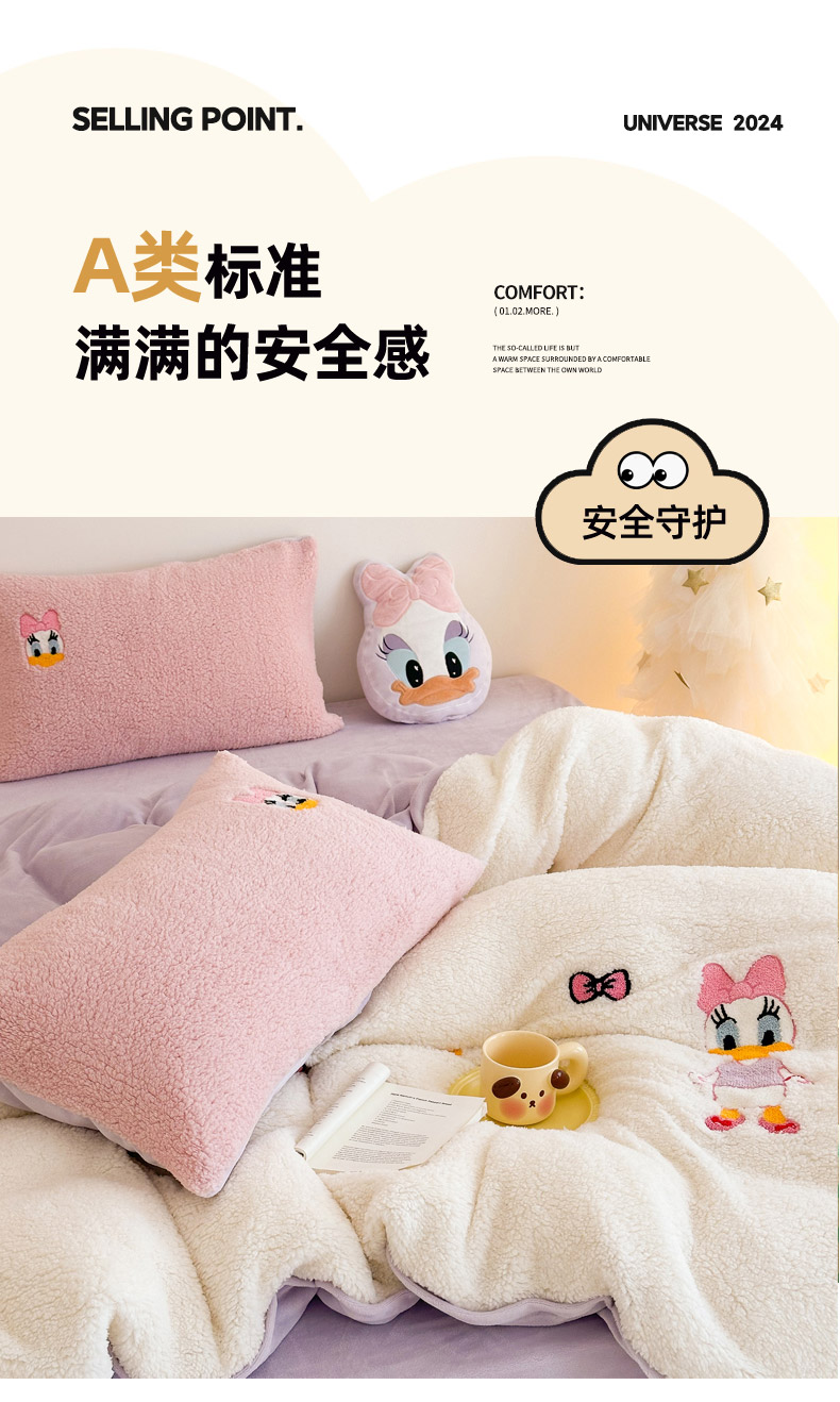 商品名称:乐坊 2024新款羊羔绒毛巾绣牛奶绒四件套冬季加厚保暖 紫色大嘴鸭