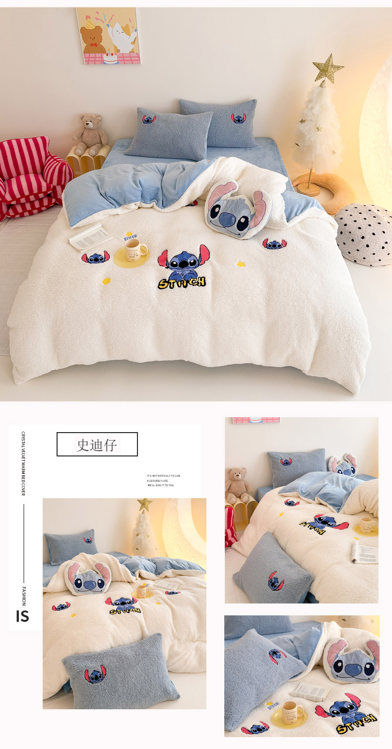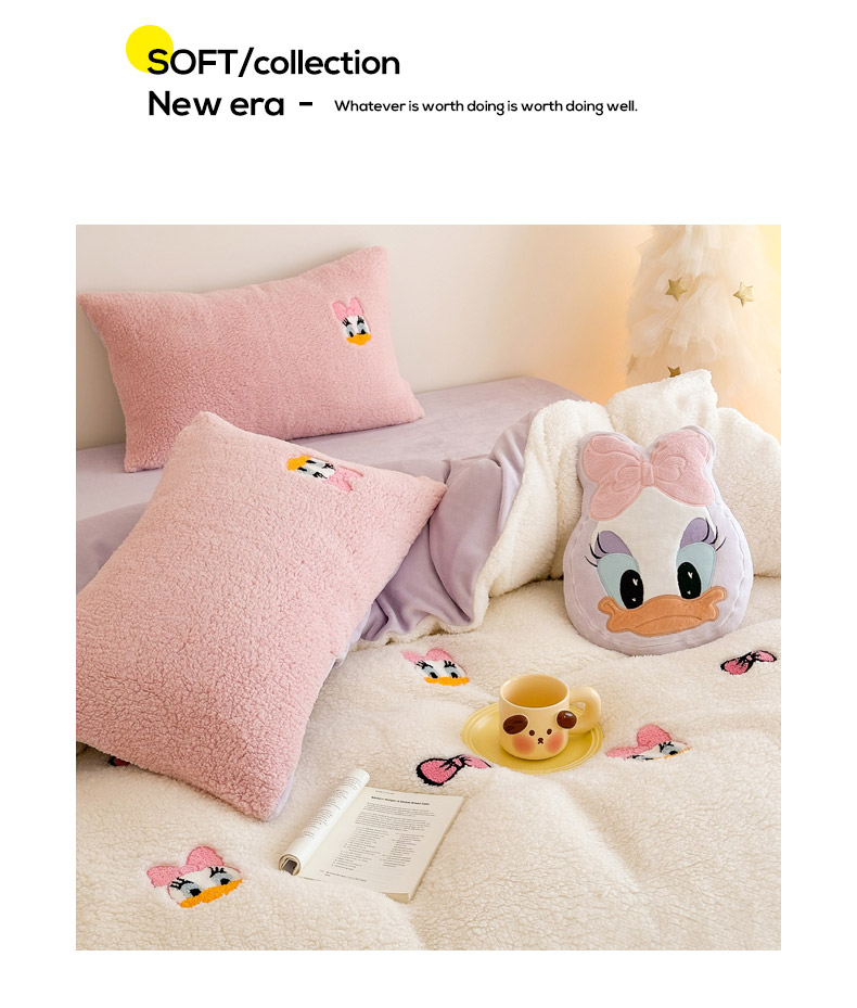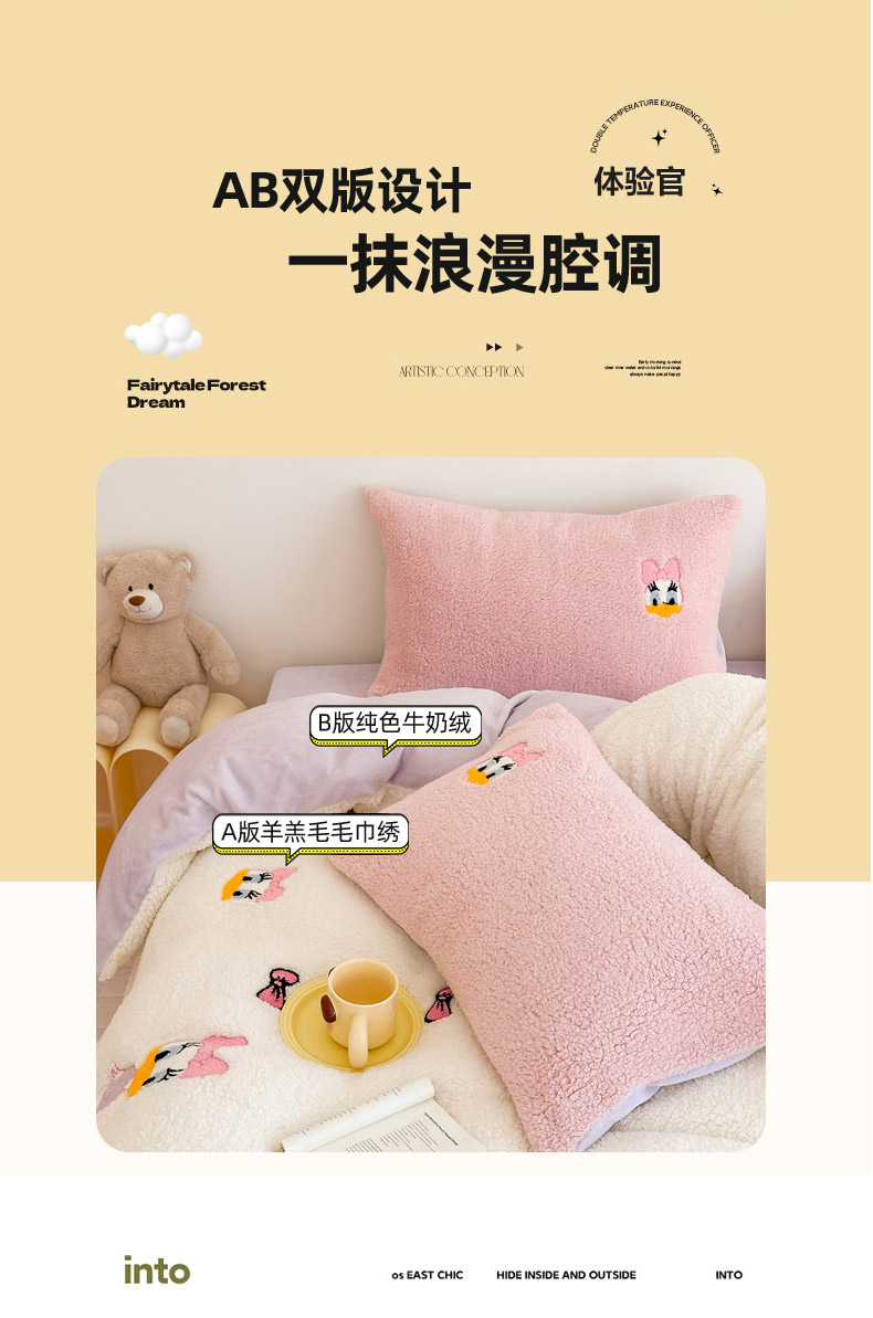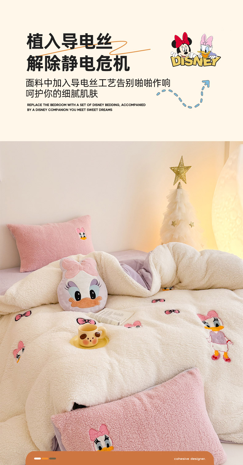 商品名称:乐坊 2024新款羊羔绒毛巾绣牛奶绒四件套冬季加厚保暖 紫色大嘴鸭
