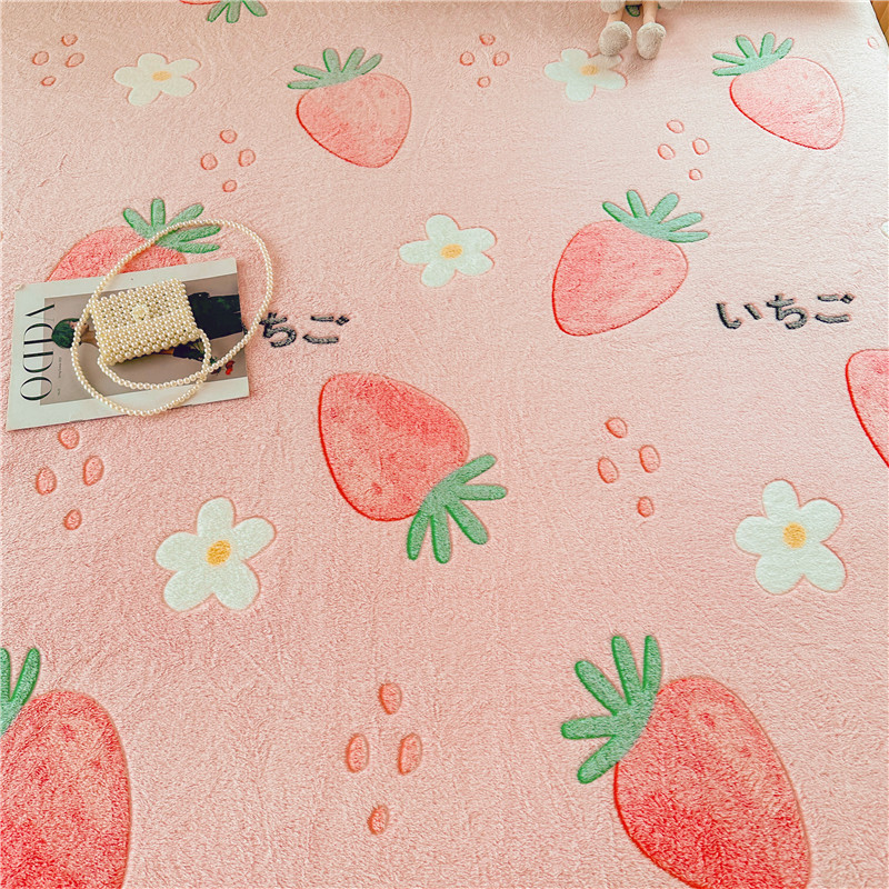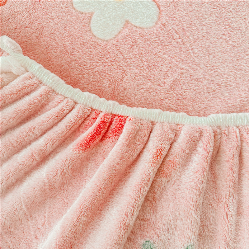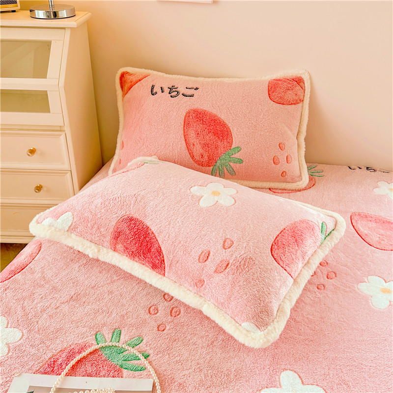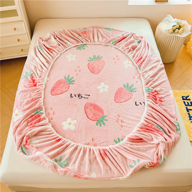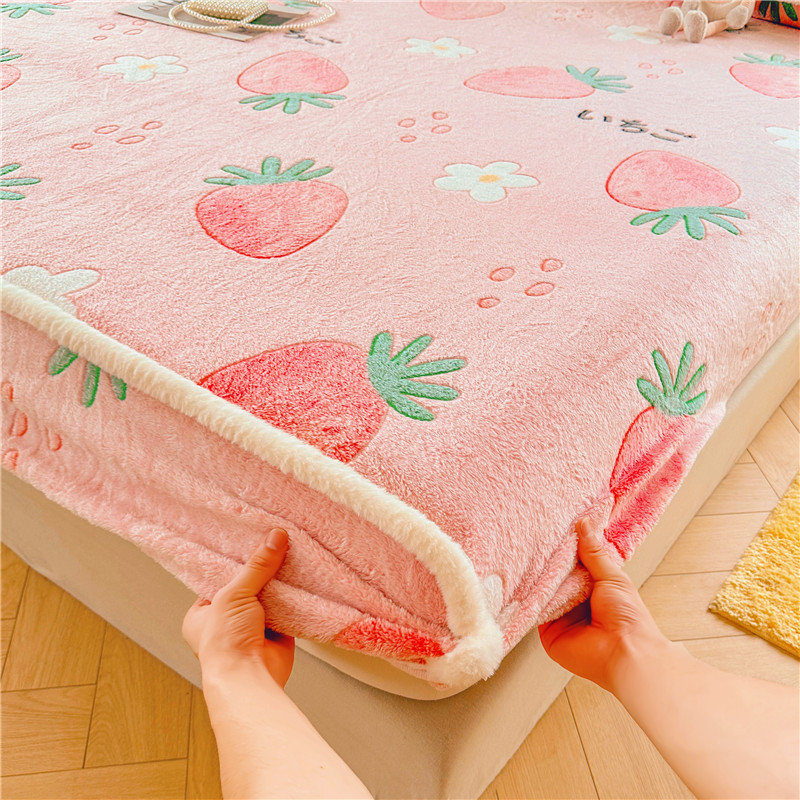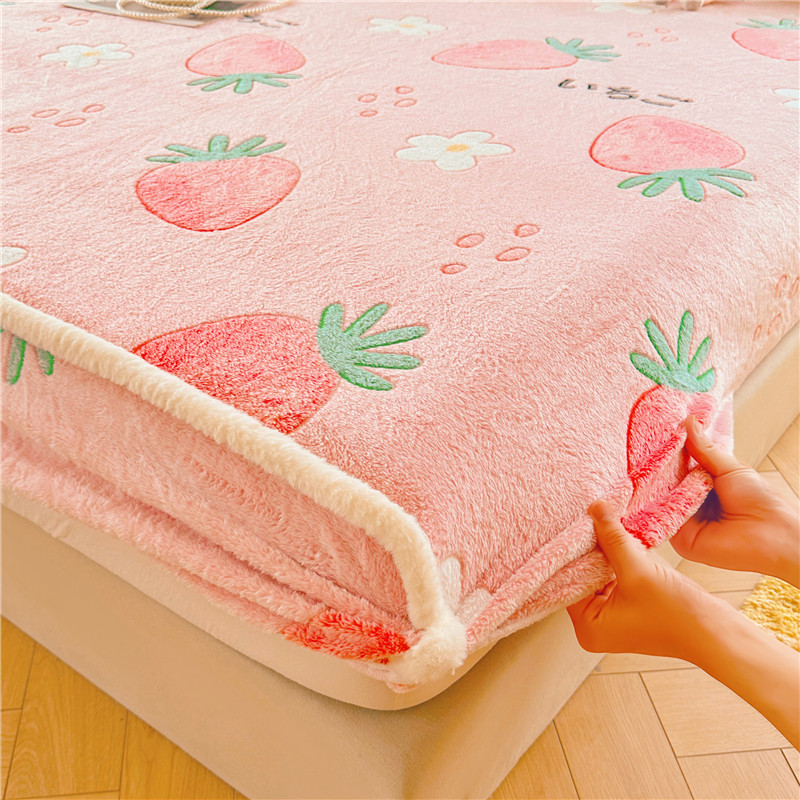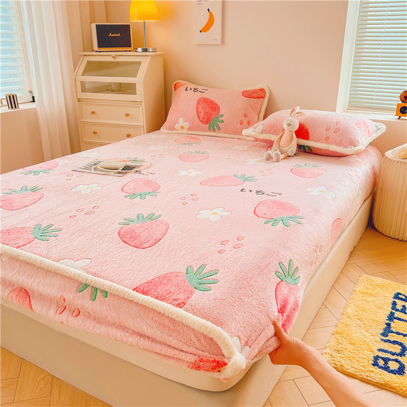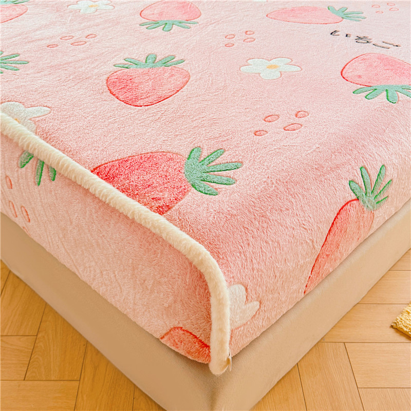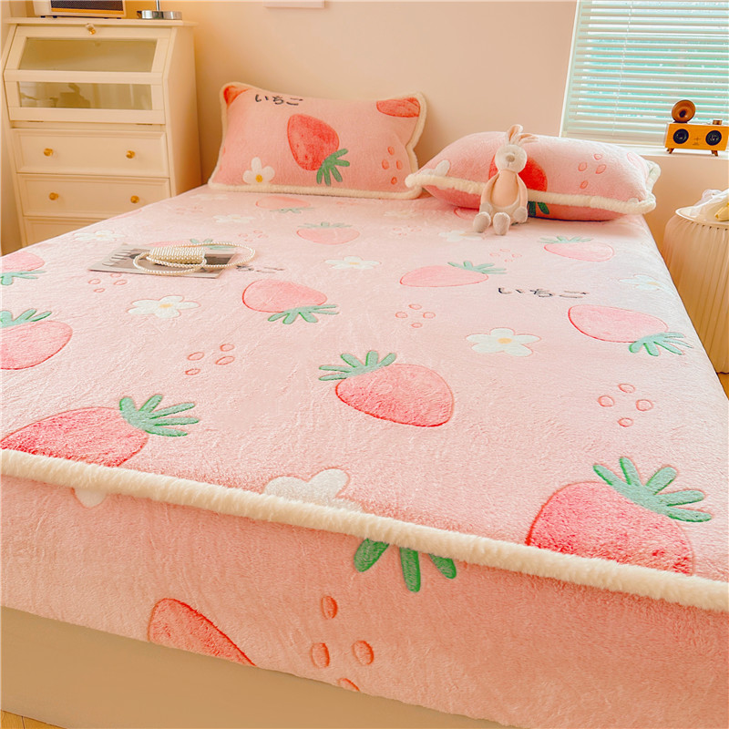 喜居 2024新款雪花绒床笠印花牛奶绒床笠三件套单床笠 草莓布丁