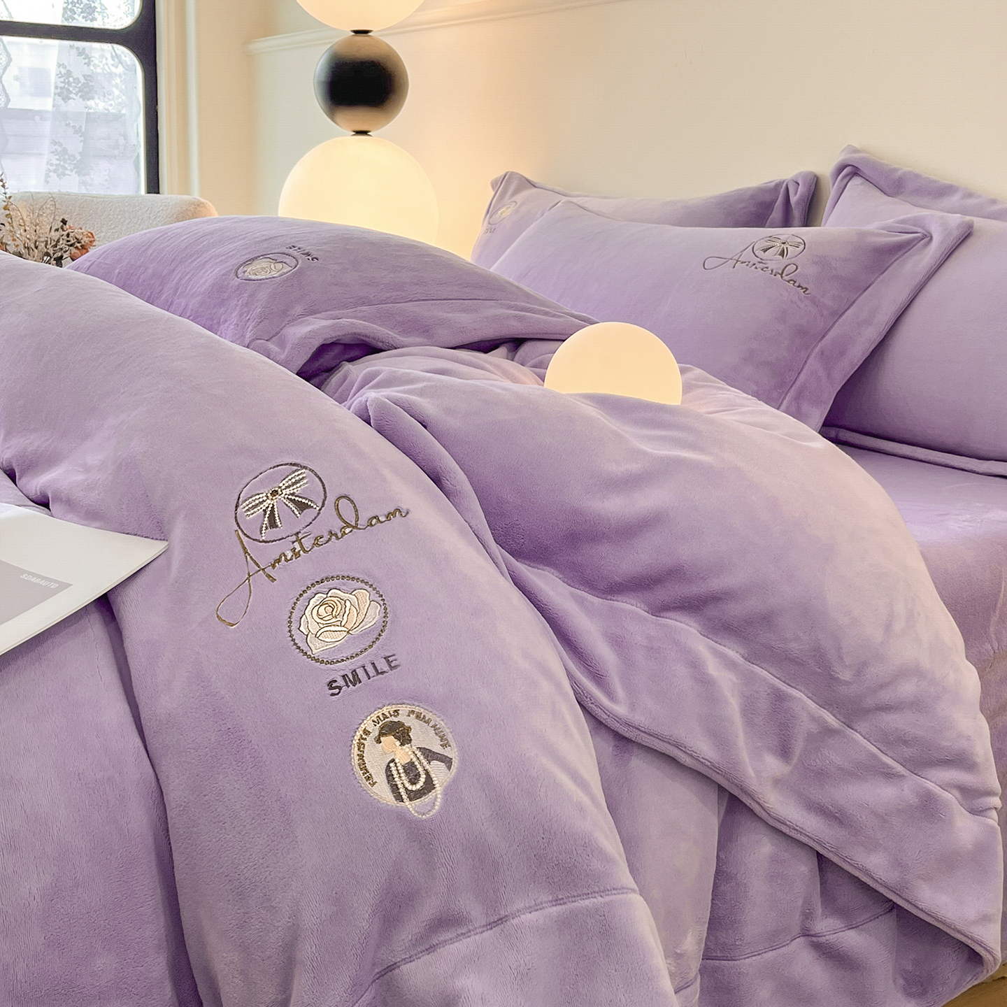 新方向 2025新款全消光A类刺绣牛奶绒四件套-伊菲 伊菲-莫奈紫