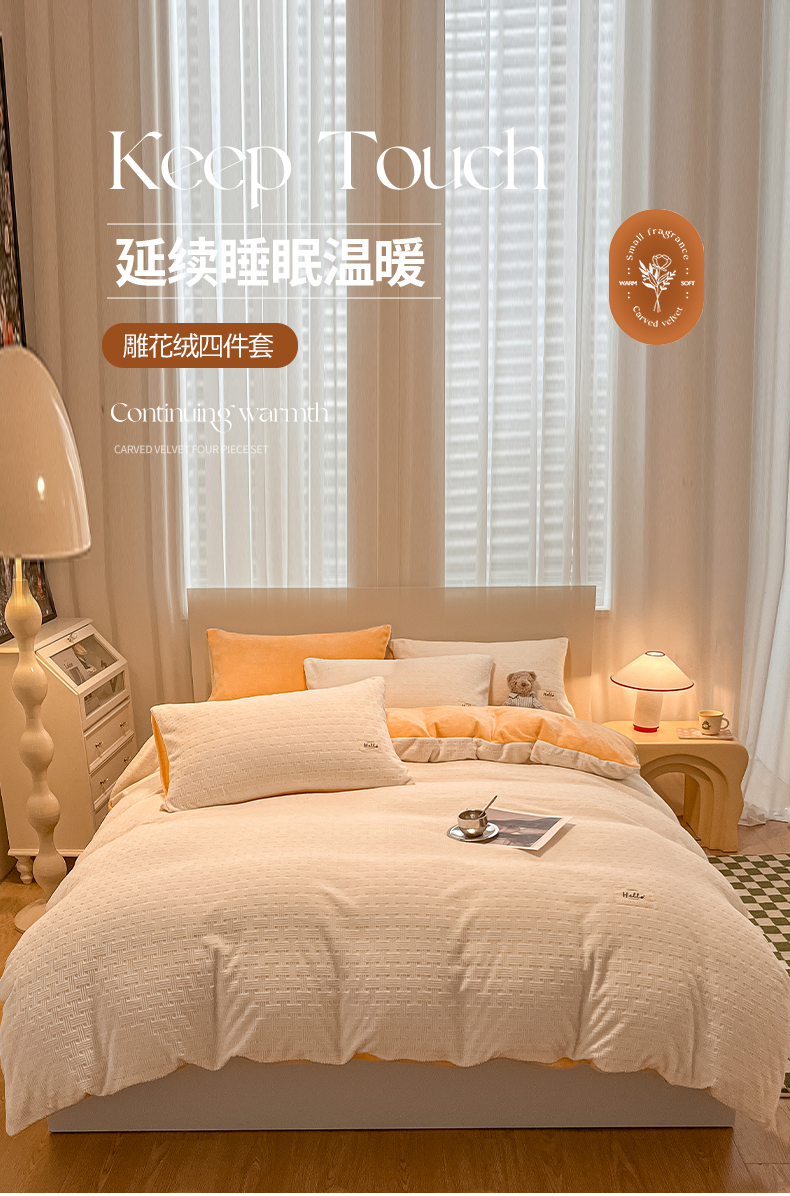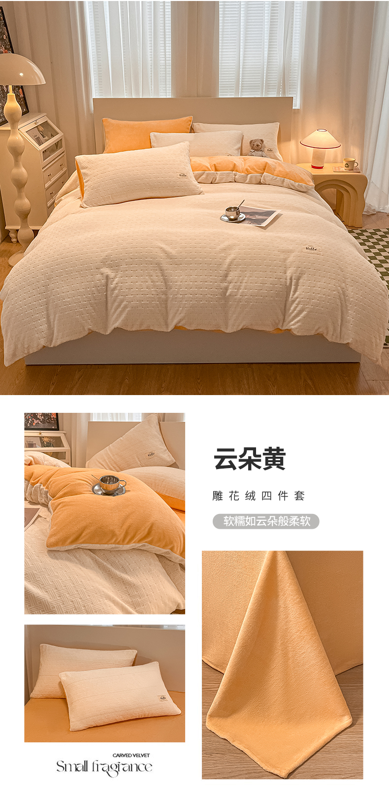857家居 2024新款雕花绒四件套-云朵系列 云朵黄
