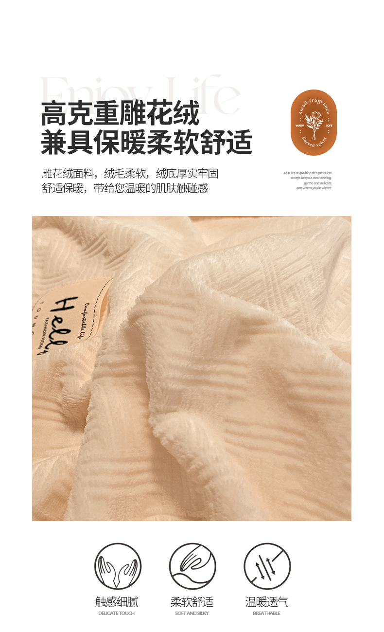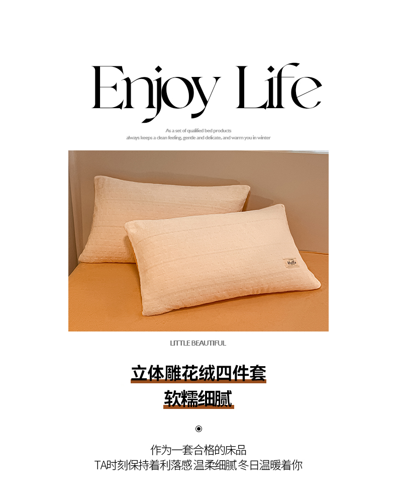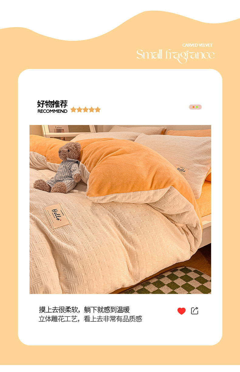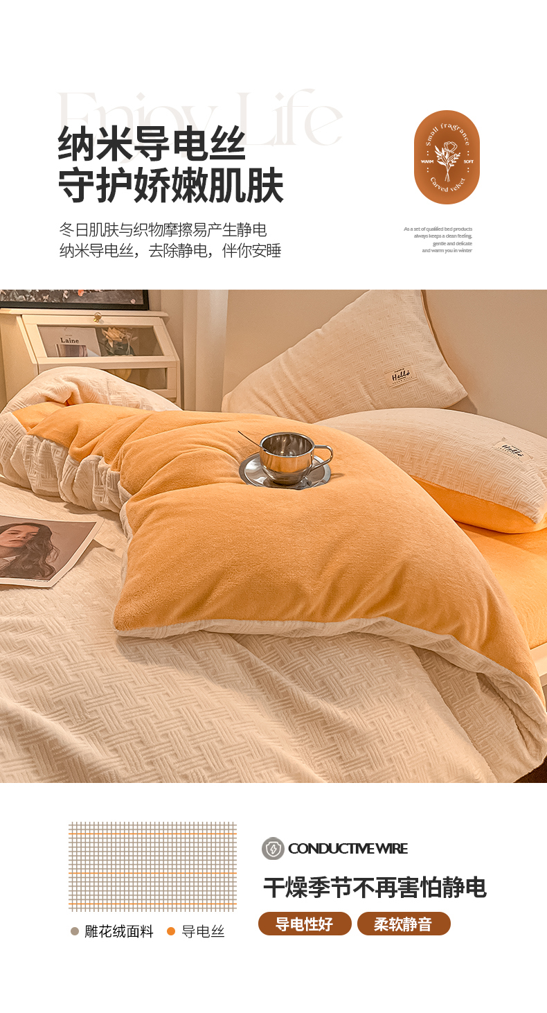 商品名称:857家居 2024新款雕花绒四件套-云朵系列 云朵黄