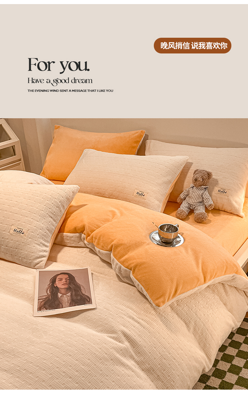 (总)857家居 2023新款牛奶绒雕花四件套,千鸟-豆绿,千鸟-拿铁咖,千鸟-奶油咖,千鸟-樱花粉