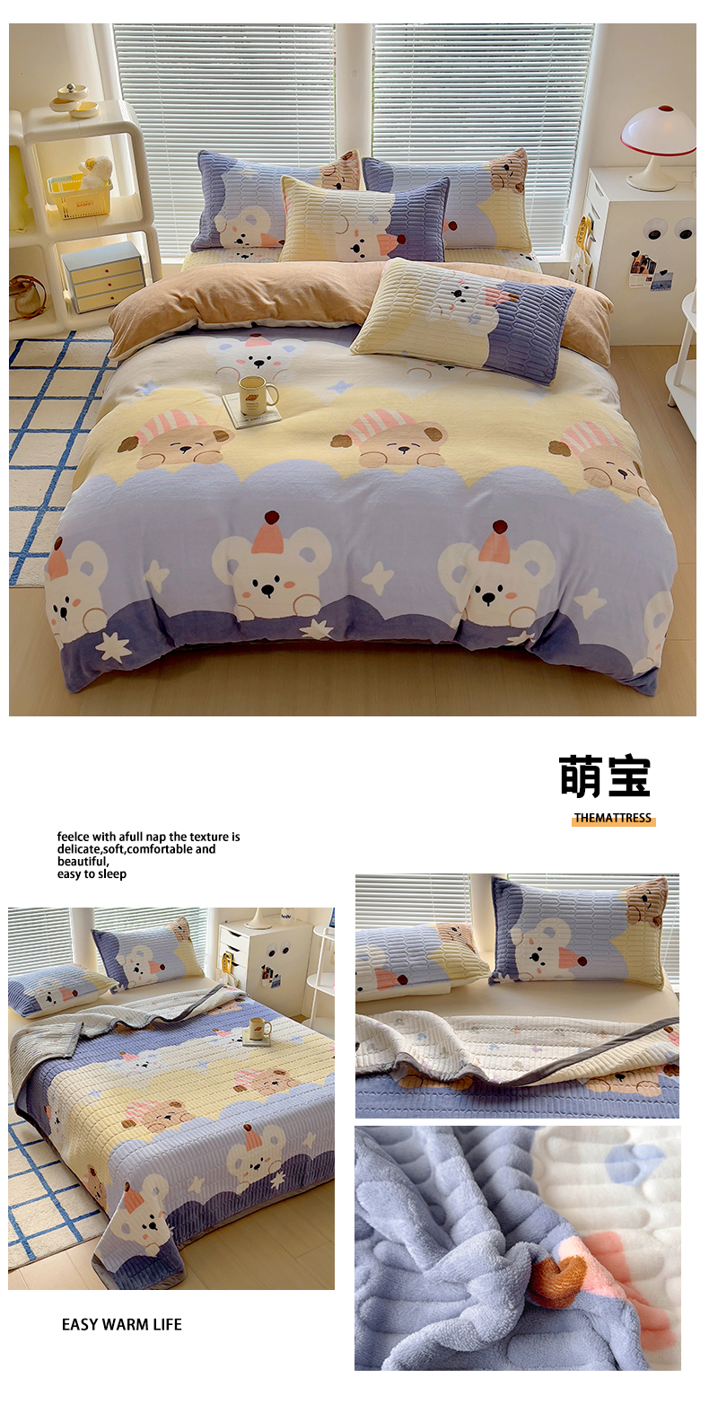 商品名称:美梦家纺 2024新款牛奶绒简单款夹棉床盖三件套 漫生活