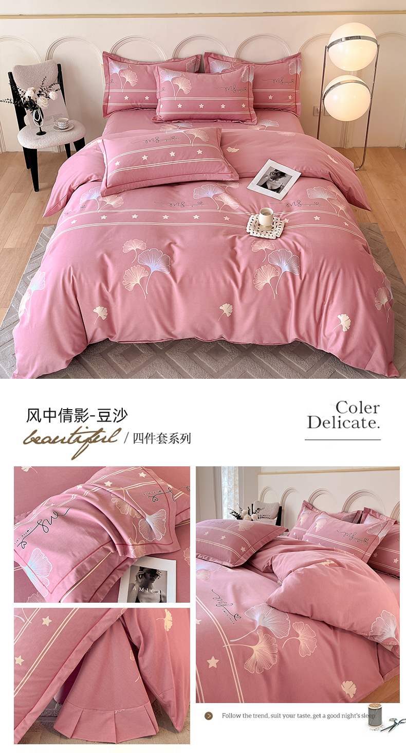 当前位置: 91家纺网 > 商品网购 > 床品套件 > 四件套 > 普通磨毛四件套 > 铭成 2024新款全棉生态喷气加厚磨毛四件套风中倩影-豆沙