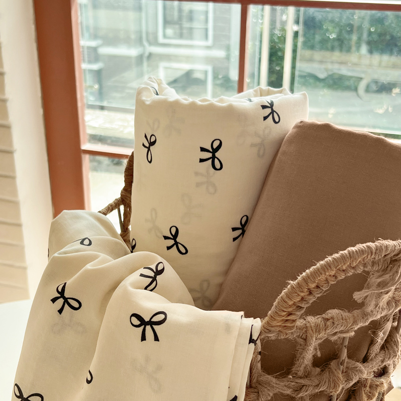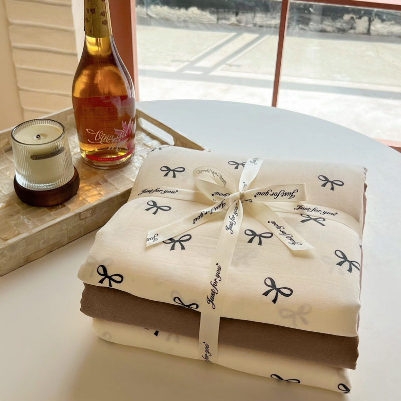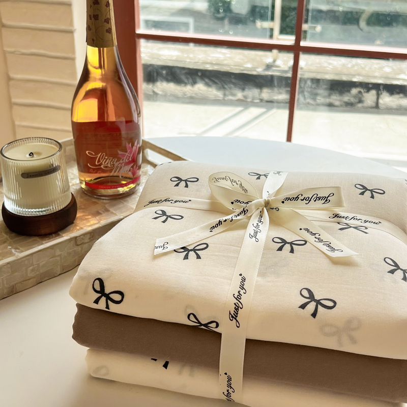 商品名称:一比一家纺 2025新款全棉母婴级抗菌有氧全棉双层纱亲肤全棉小清新印花三件套四件套 蝴蝶可颂-黑