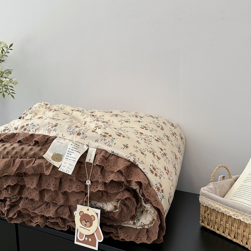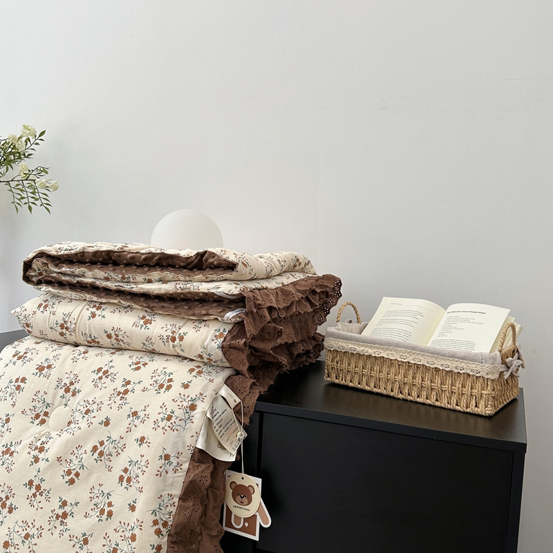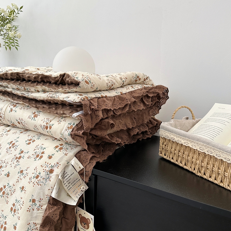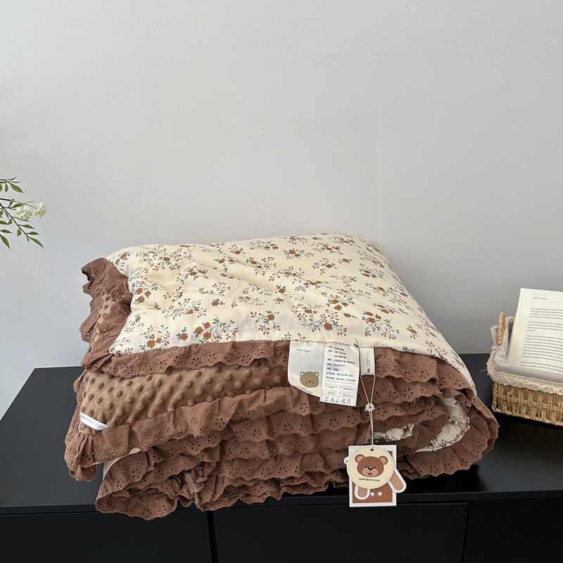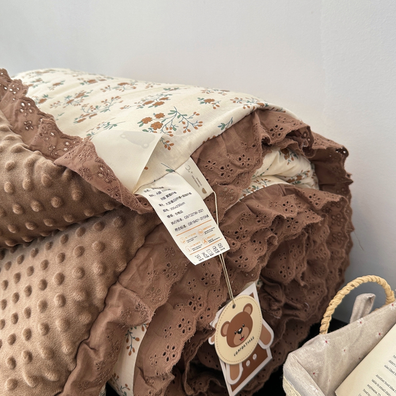 • 91家纺网 家纺一手货源 找家纺 佰织鑫家居 2024新款全棉法式花边懒人豆豆被 月桂