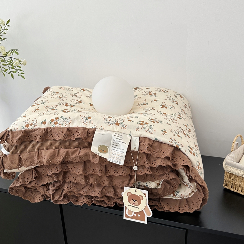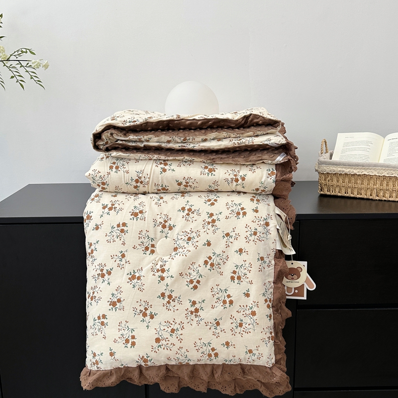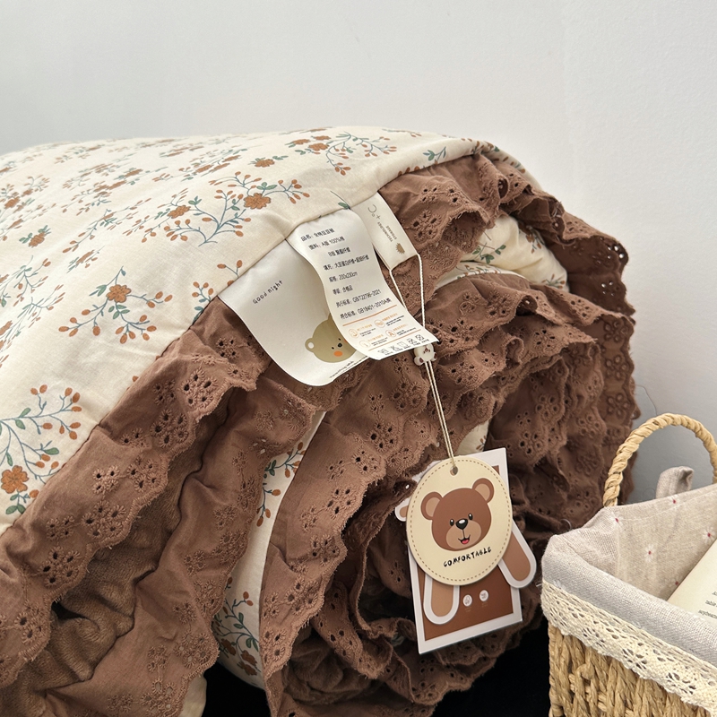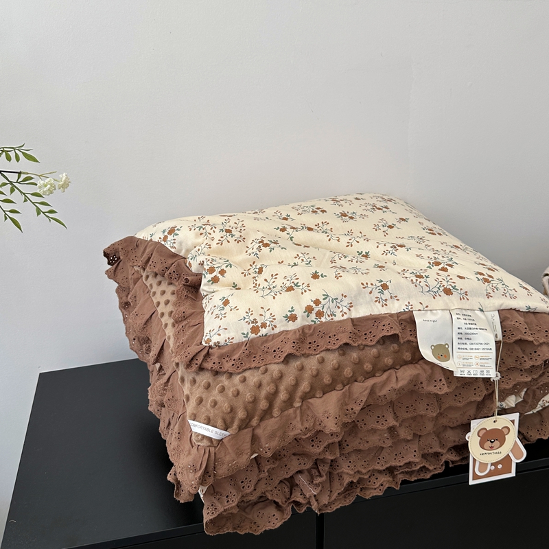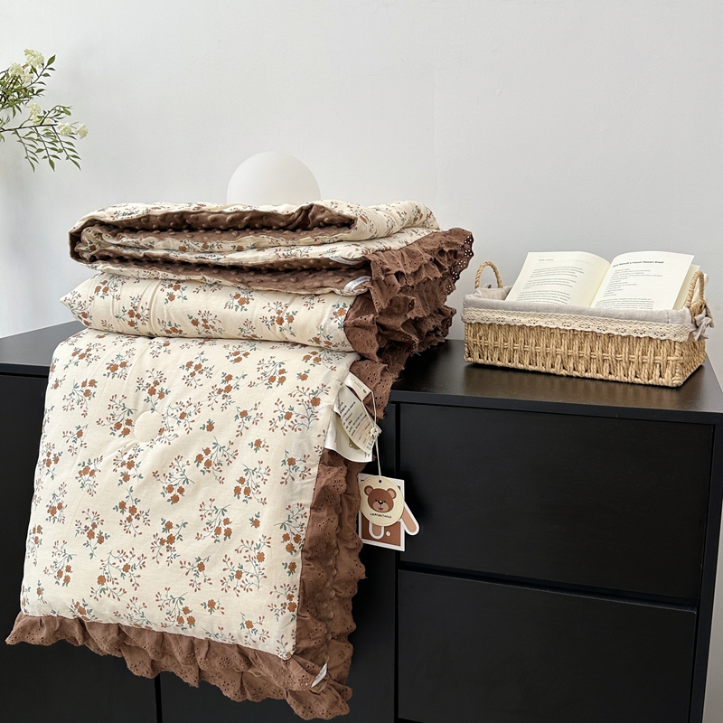 • 91家纺网 家纺一手货源 找家纺 佰织鑫家居 2024新款全棉法式花边懒人豆豆被 月桂