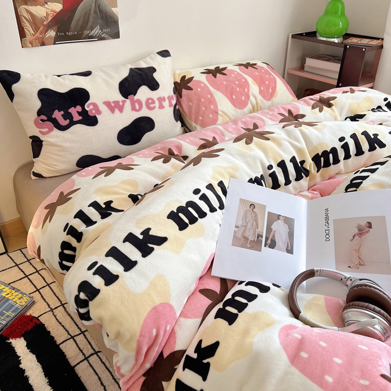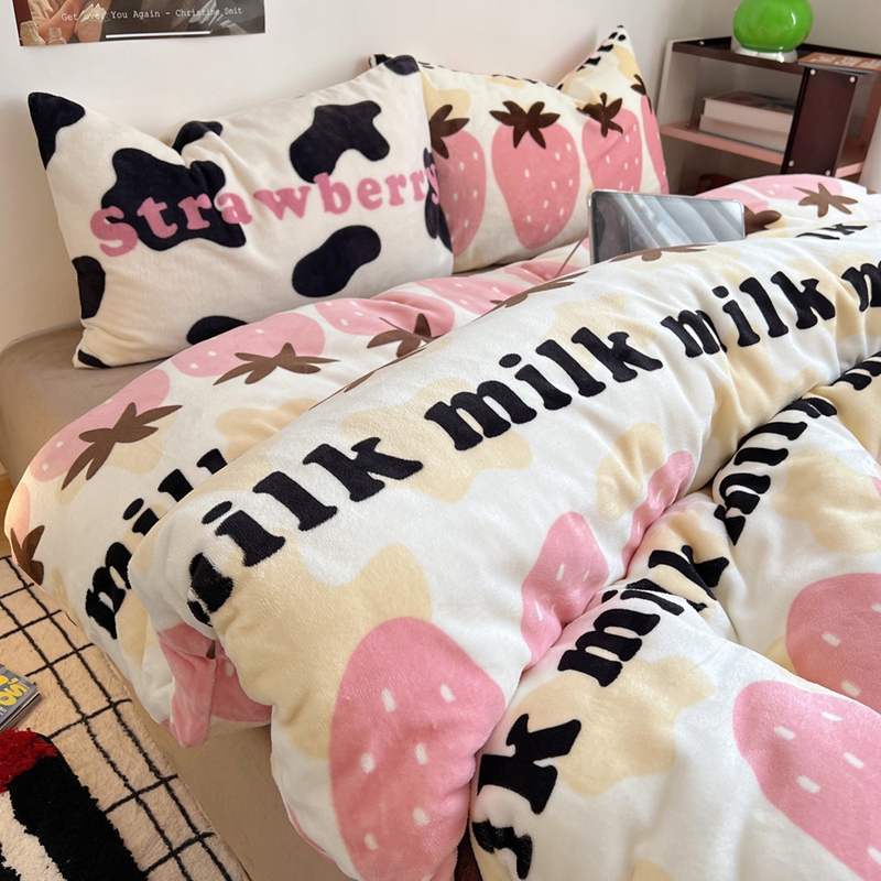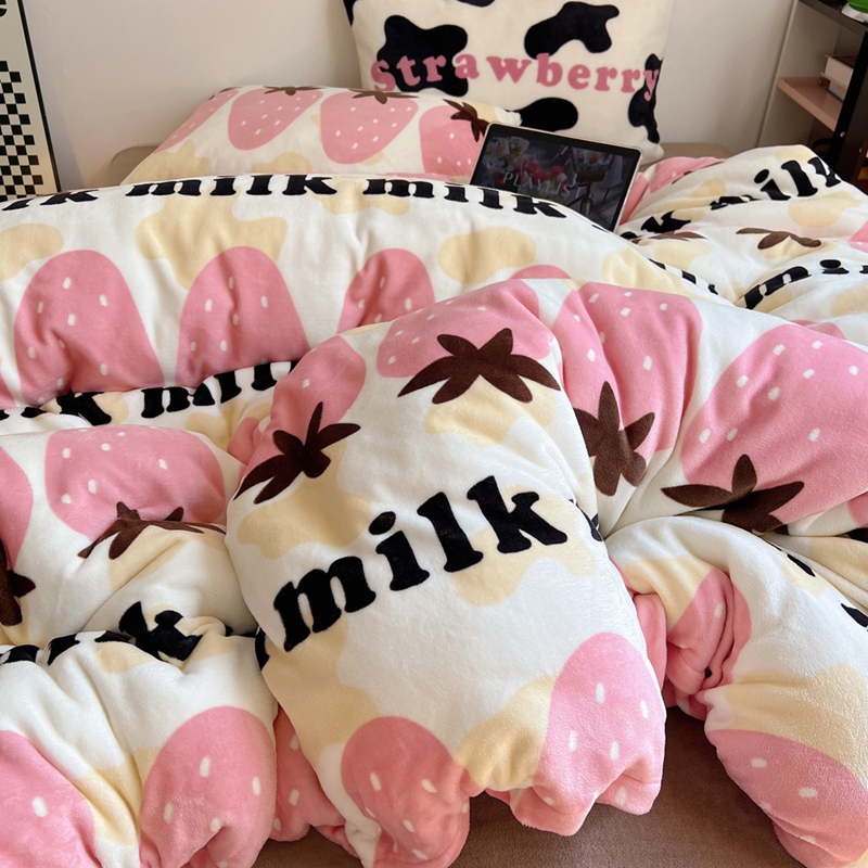 商品名称:桃喜 2024新款多巴胺牛奶绒甜酷时尚混搭系列四件套 牛奶草莓