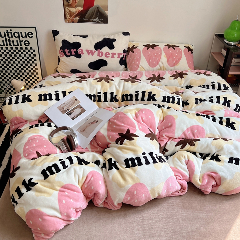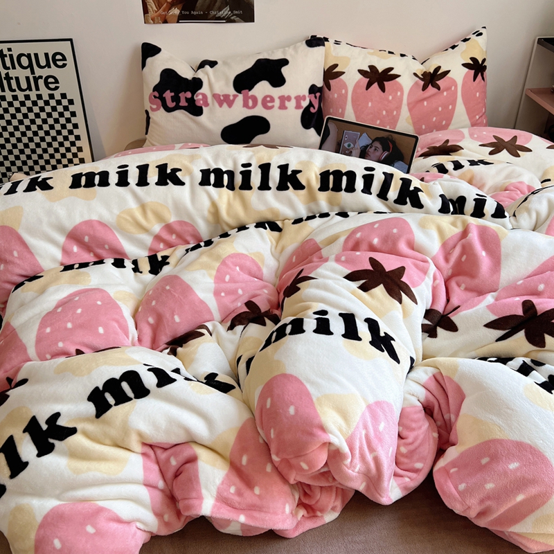 桃喜 2024新款多巴胺牛奶绒甜酷时尚混搭系列四件套 牛奶草莓