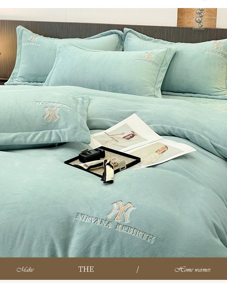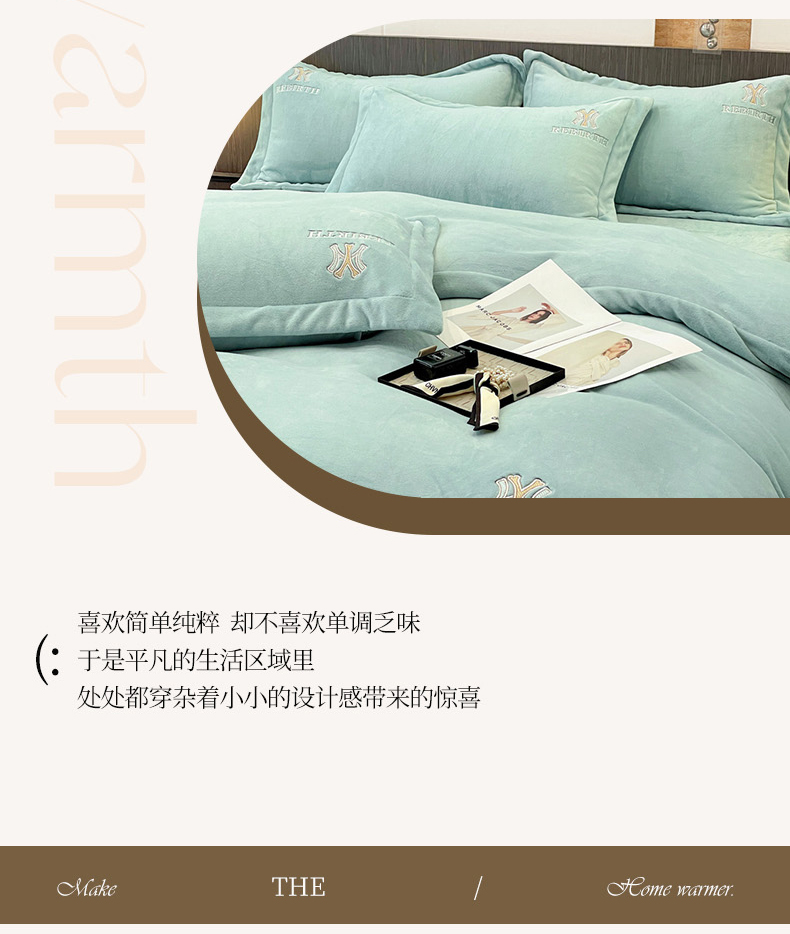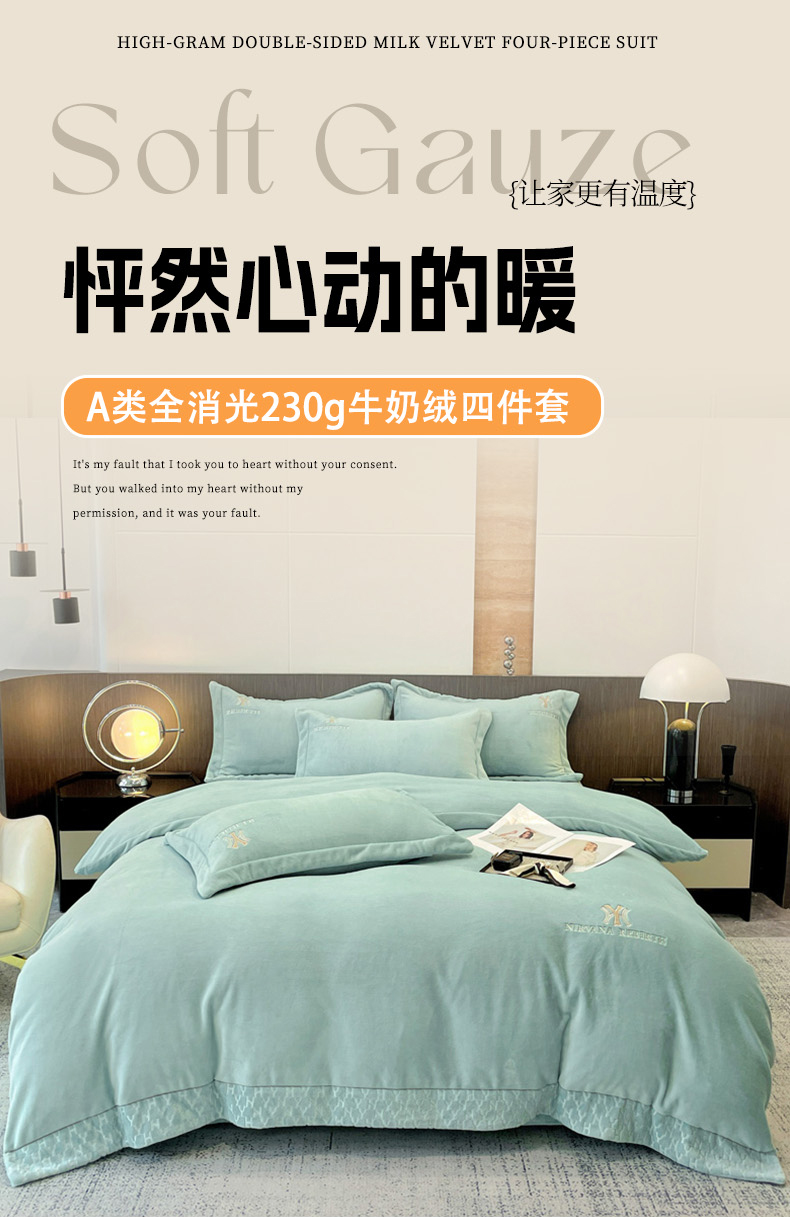 (总)星尚家纺 2024新款全消光230g牛奶绒刺绣保暖四件套-花漾,晨雾绿,豆沙粉,樱花粉