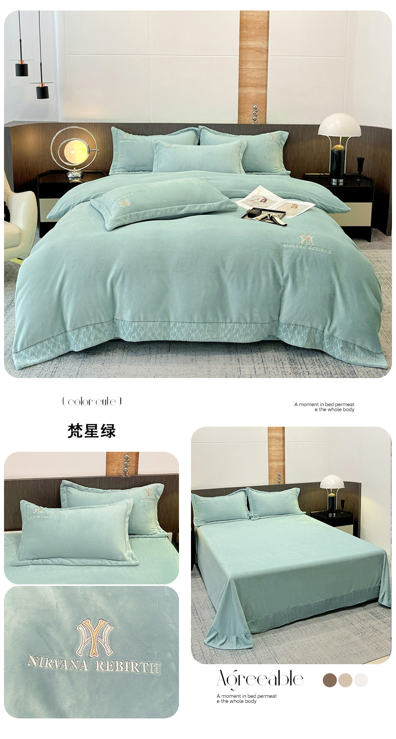 星尚家纺 2024新款全消光A类230g牛奶绒四件套-维也纳 梵星绿