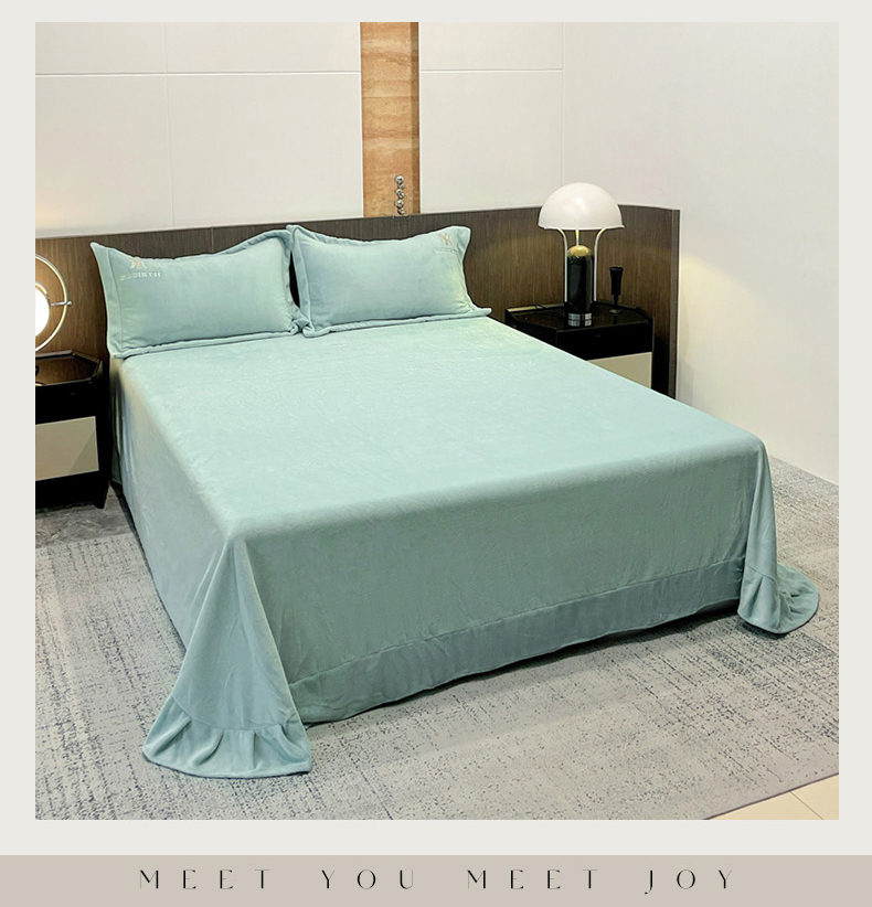 (总)星尚家纺 2024新款加厚保暖全消光牛奶绒夹棉床裙四件套-玫瑰之恋,粉玉,寐紫,浅蓝,水绿