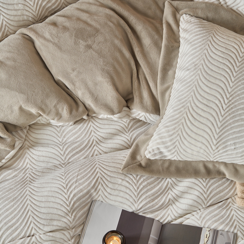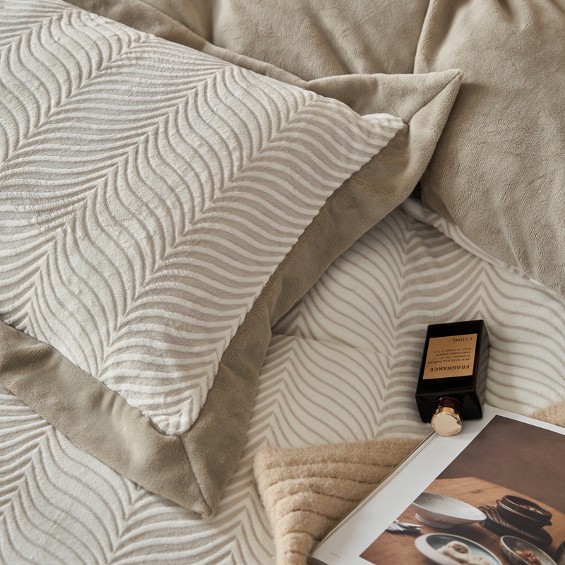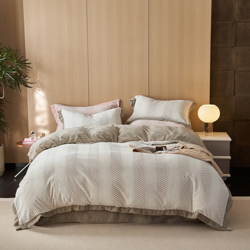时年家纺 2024新款高克重暖暖云朵牛奶绒工艺款四件套-素羽 素羽-灰绿