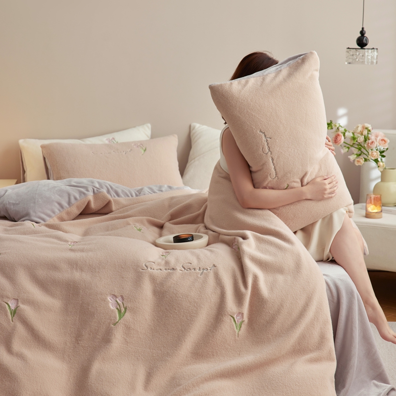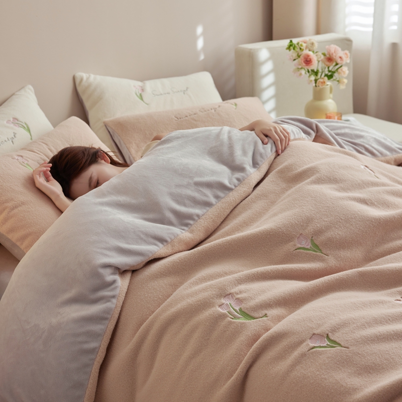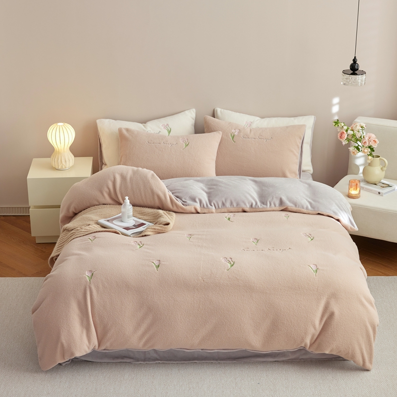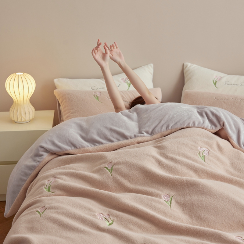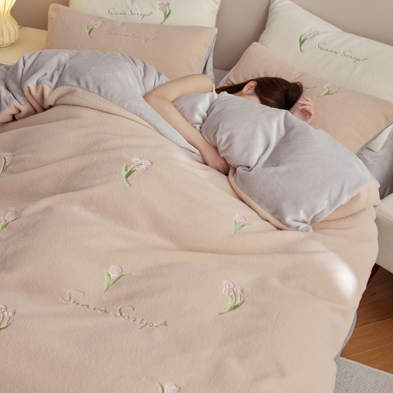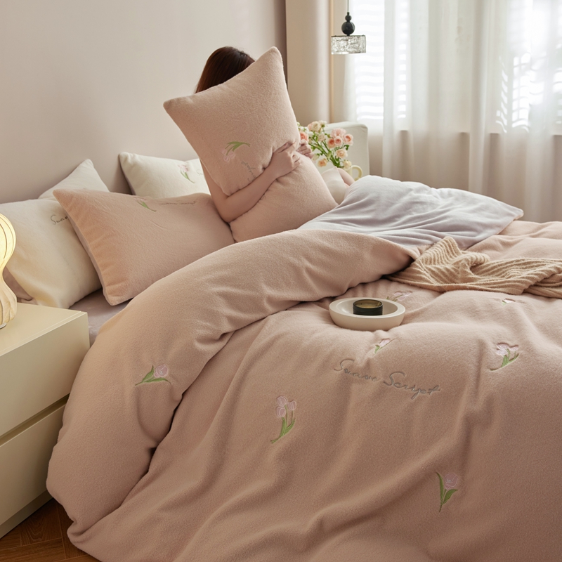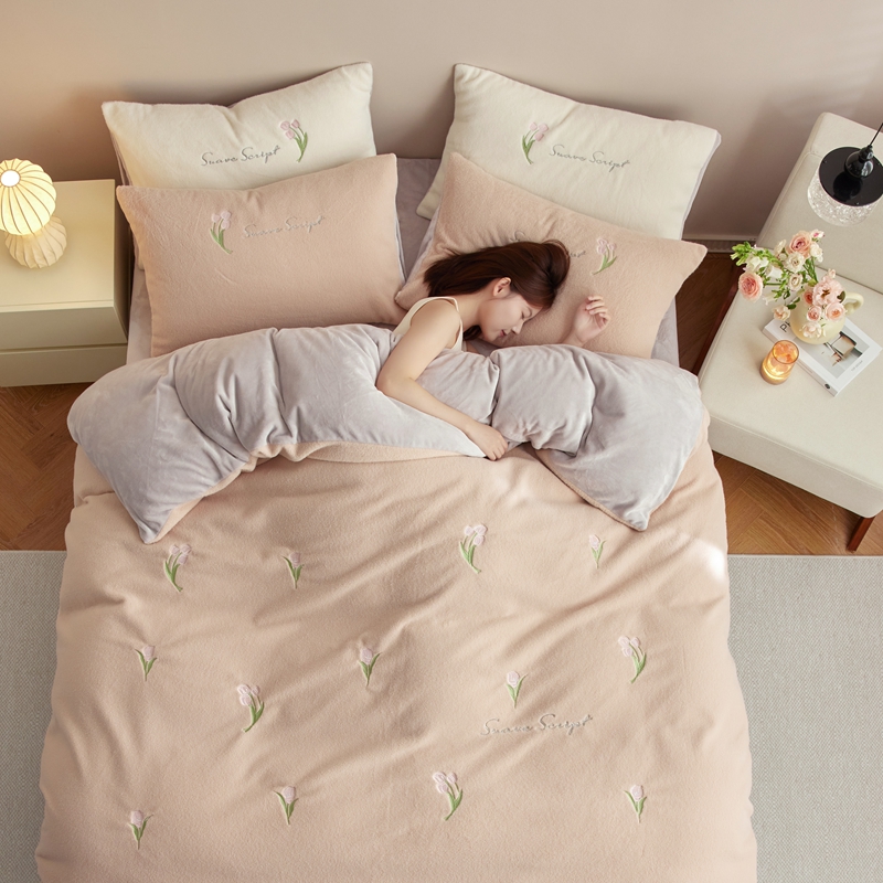 当前位置: 91家纺网 > 商品网购 > 床品套件 > 四件套 > 牛奶绒四件套 > (总)初拾 2024新款300g暖羊绒绣花牛奶绒四件套-绒郁金香