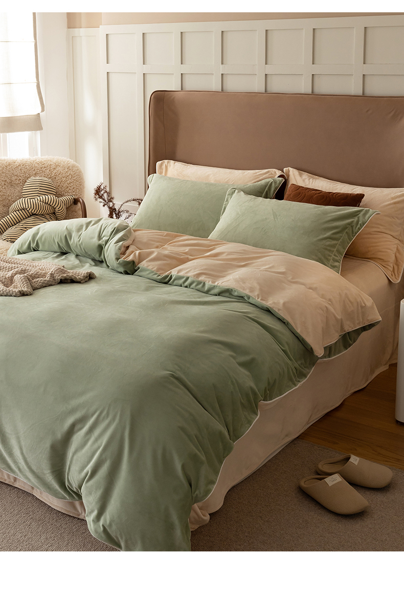 (总)万盛家纺 2025新款速暖绒保暖速干四件套,淡彩绿—奶油咖,粉玉—奶油咖,克洛尔兰—深空灰,梦幻蓝—烟灰,奶油咖—烟灰,深咖—奶油咖,烟灰—克洛尔兰