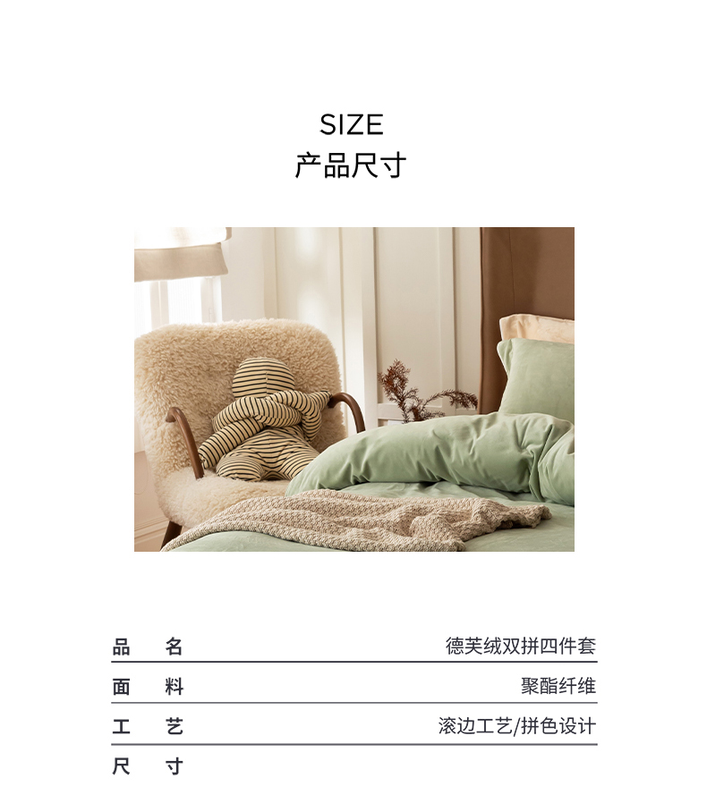 商品名称:万盛家纺 2025新款德芙绒牛奶绒法莱绒水晶绒双拼单被套 浅豆绿-浅米