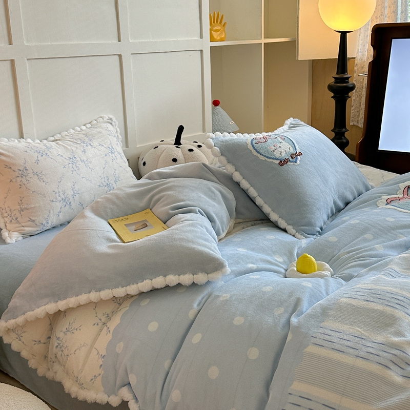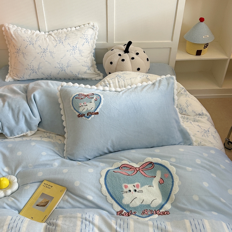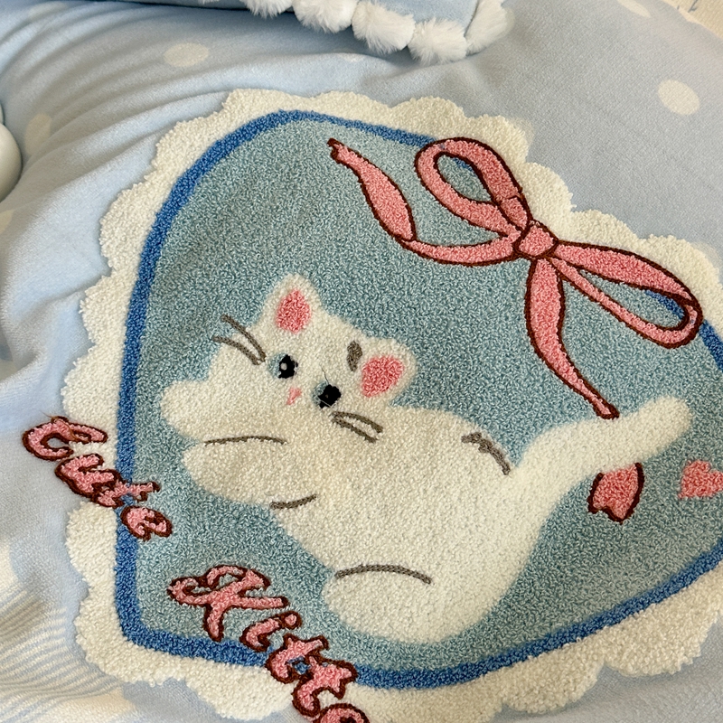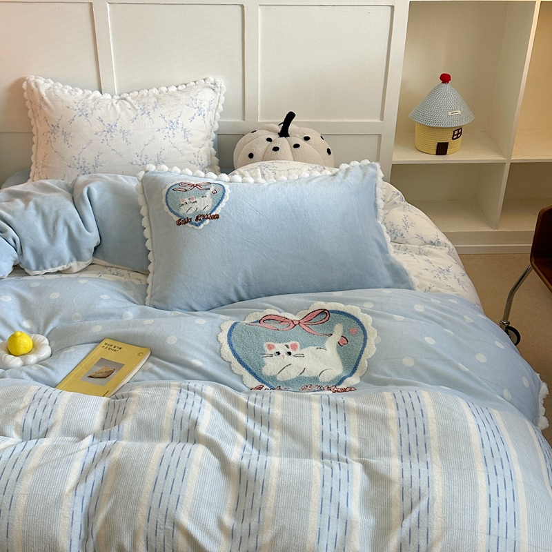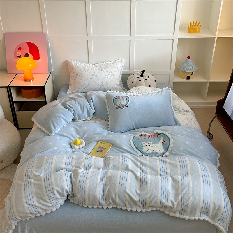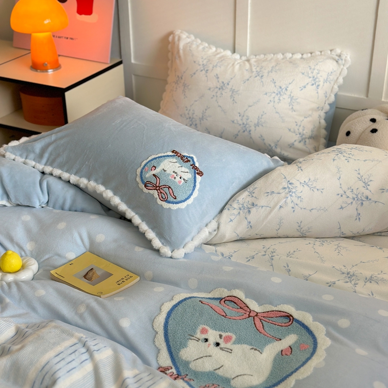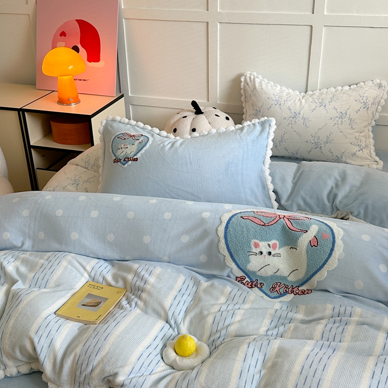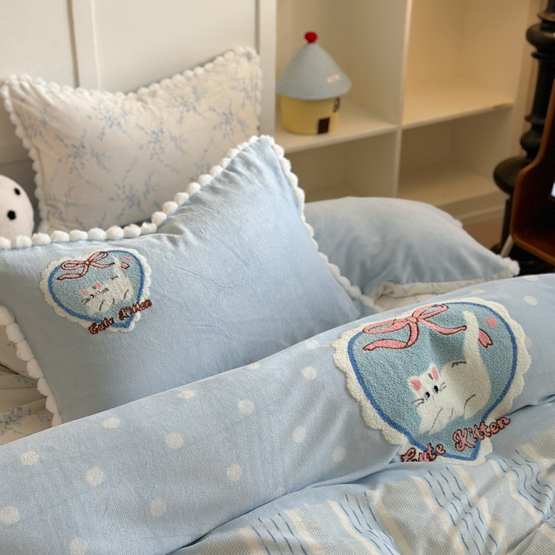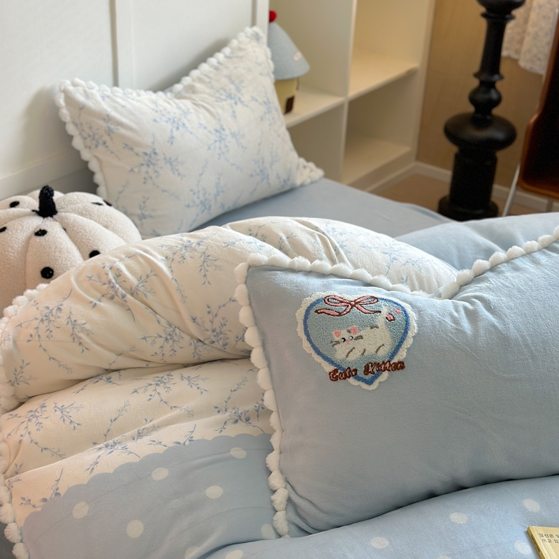 柚子YOUTH 2024新款毛球花边三拼牛奶绒四件套 猫之恋