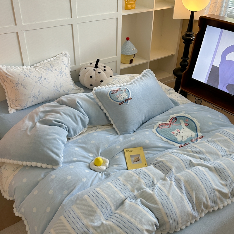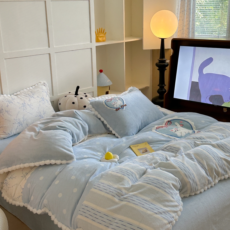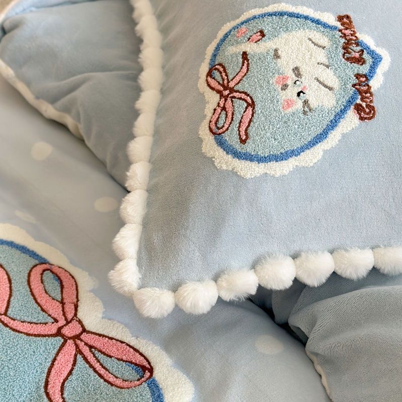 (总)柚子YOUTH 2025新款加厚牛奶绒卡通毛巾绣四件套-印加绣送同款毛毯,蛋糕小狗,公主猫,头套猫,兔兔花园,小伙伴,雪纳瑞