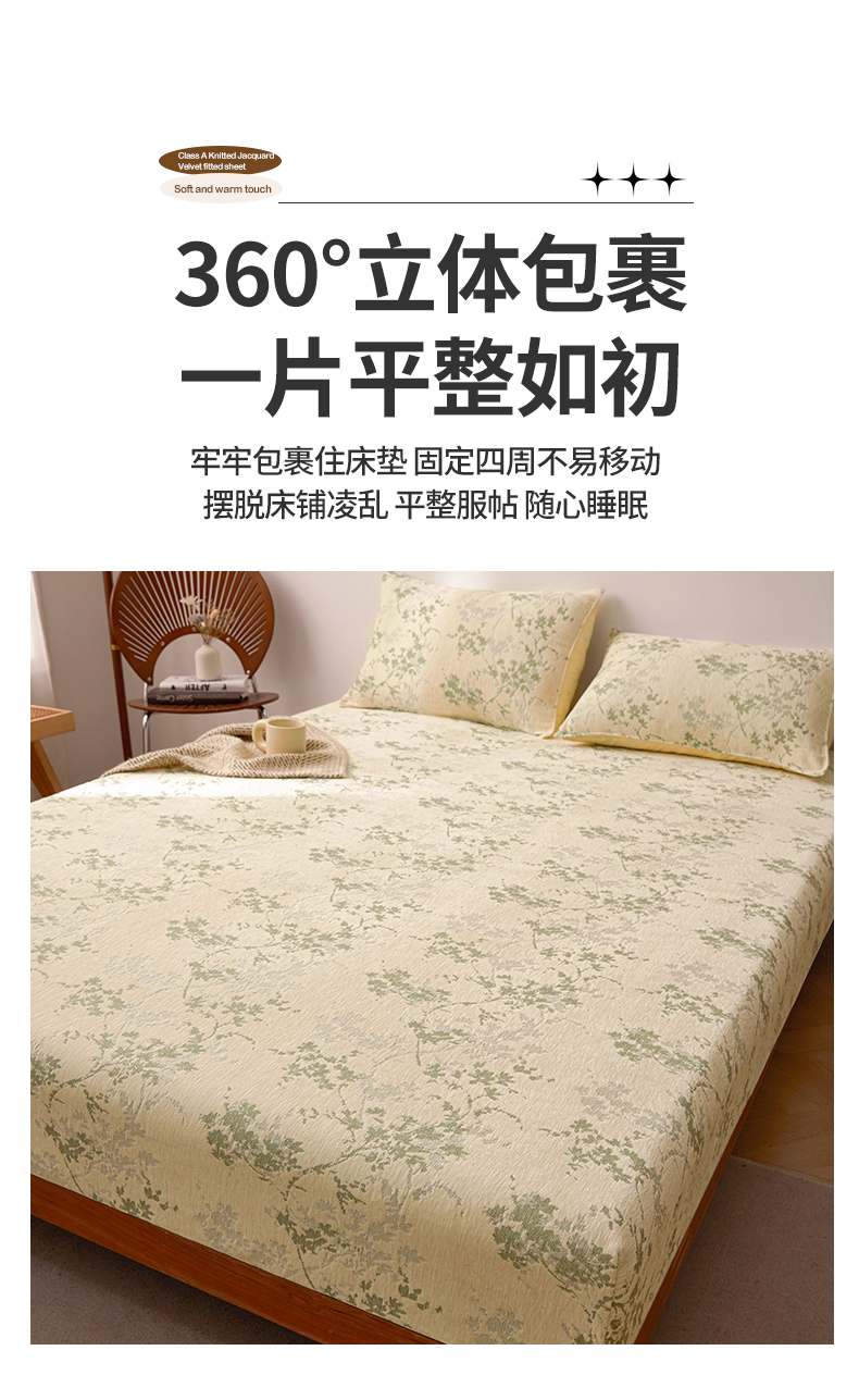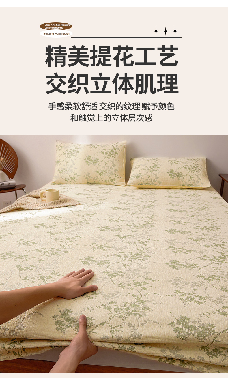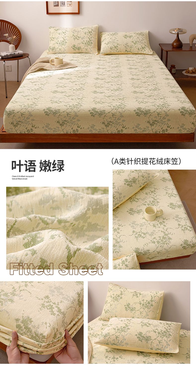 商品名称:2024新款针织提花绒床笠-叶语 叶语 嫩绿