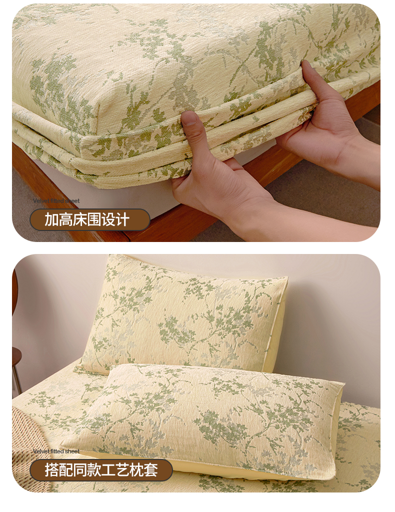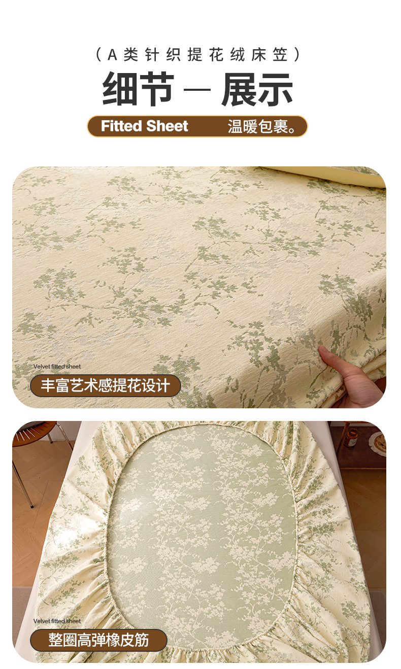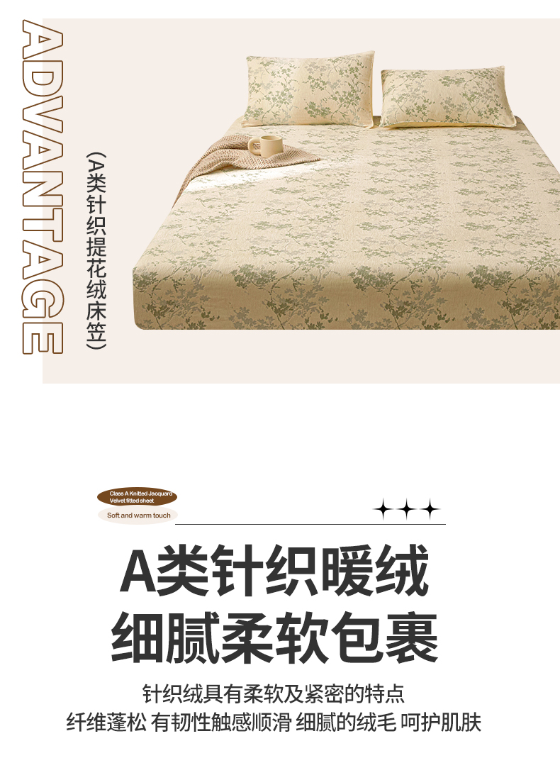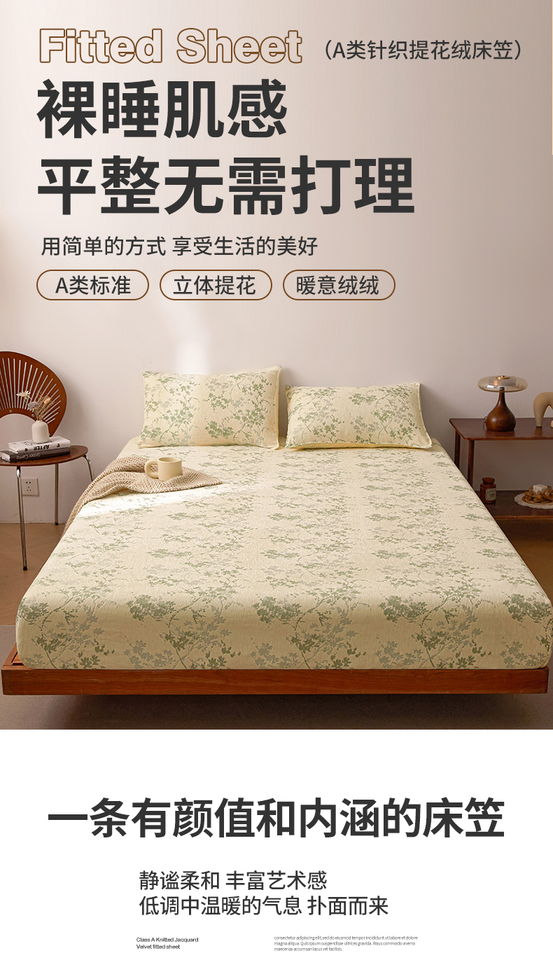 商品名称:2024新款针织提花绒床笠-叶语 叶语 嫩绿