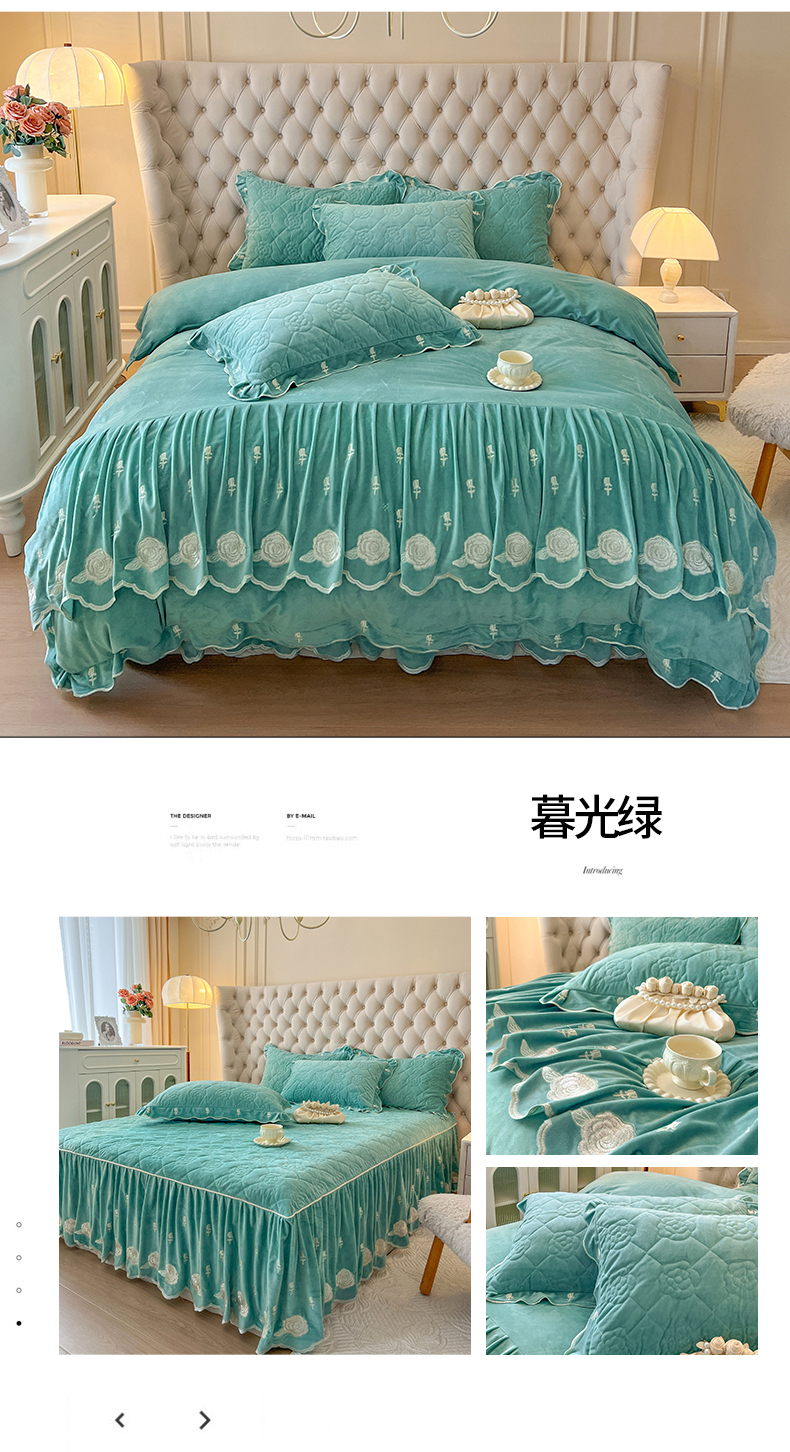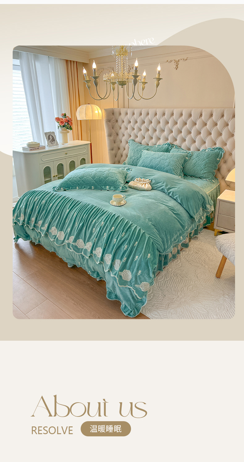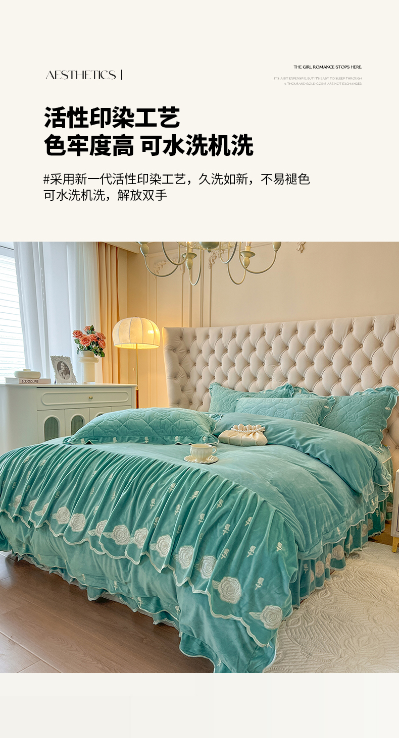 当前位置: 91家纺网 > 商品网购 > 床品套件 > 四件套 > 宝宝绒四件套 > 麒豆豆 2024新款宝宝绒床裙四件套-晨曦玫瑰 晨曦玫瑰-暮光绿