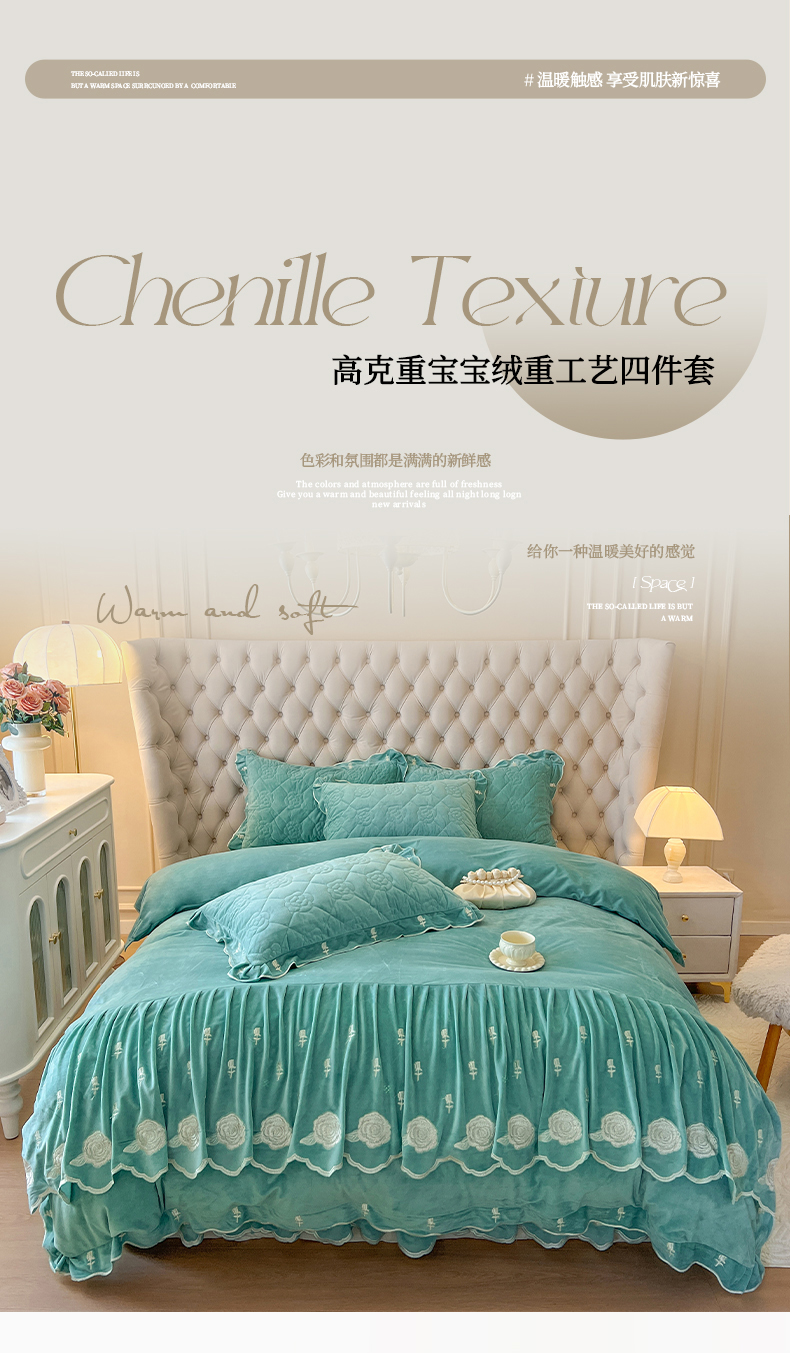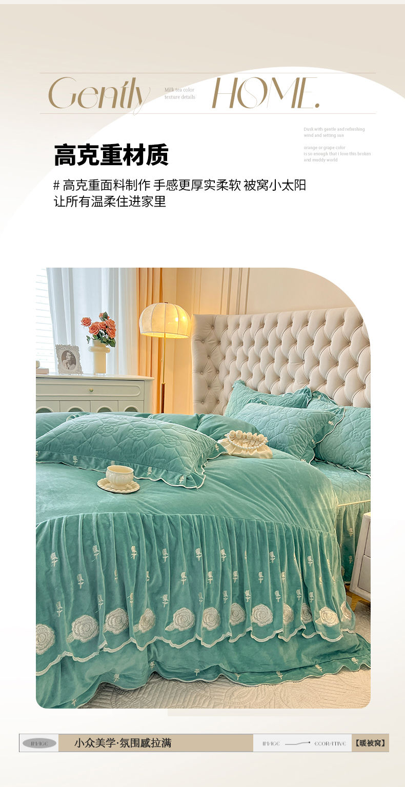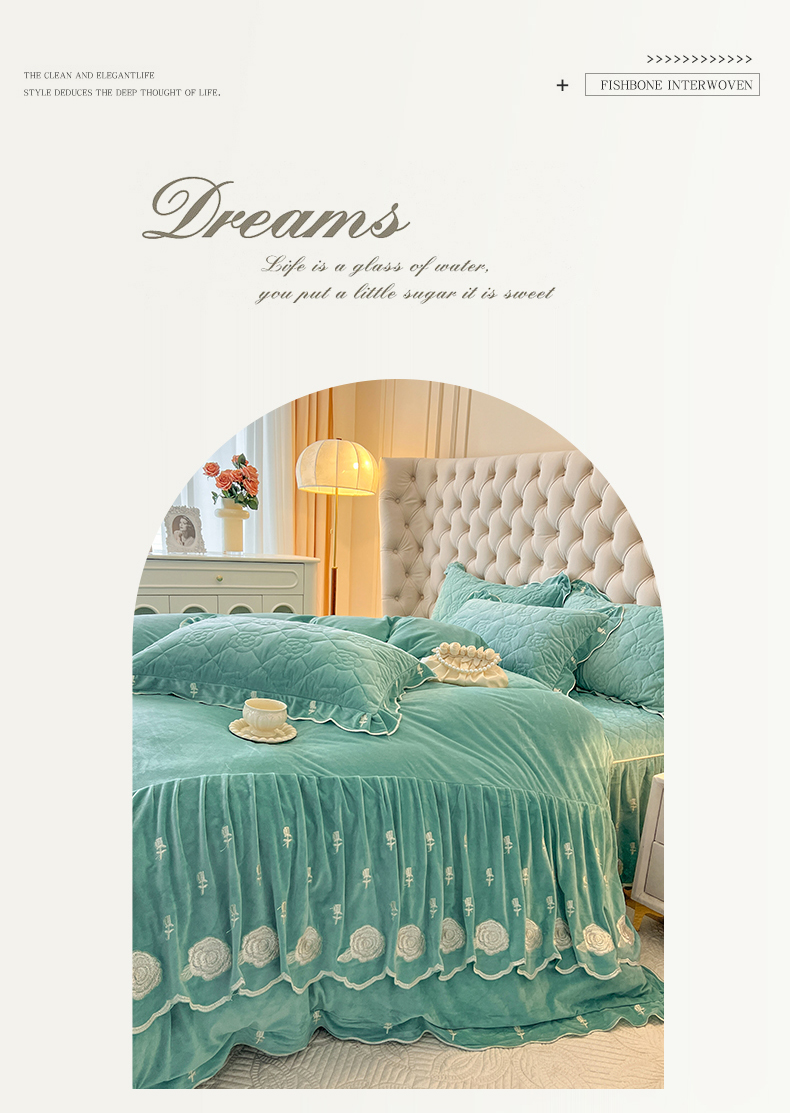 当前位置: 91家纺网 > 商品网购 > 床品套件 > 四件套 > 宝宝绒四件套 > 麒豆豆 2024新款宝宝绒床裙四件套-晨曦玫瑰 晨曦玫瑰-暮光绿