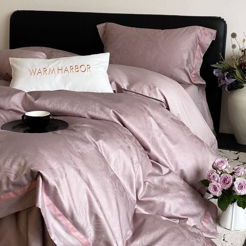 商品名称:琉宿家纺 2025新款50s双股长绒棉提花宽边工艺四件套曼琳(豆沙)