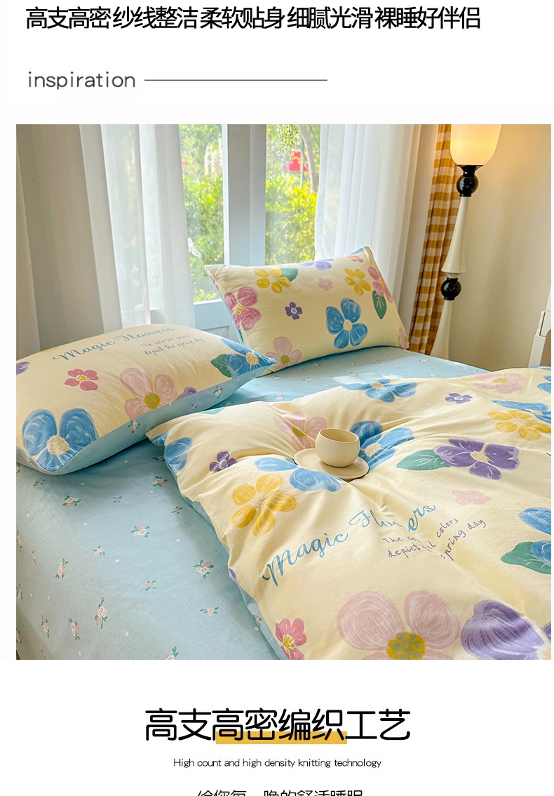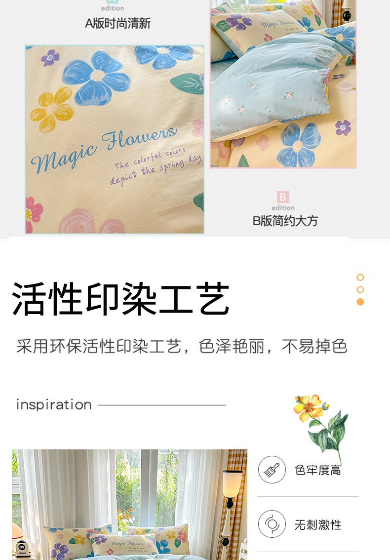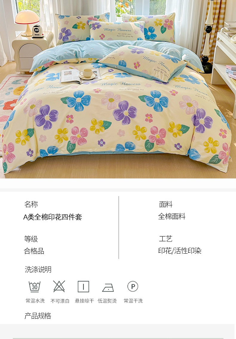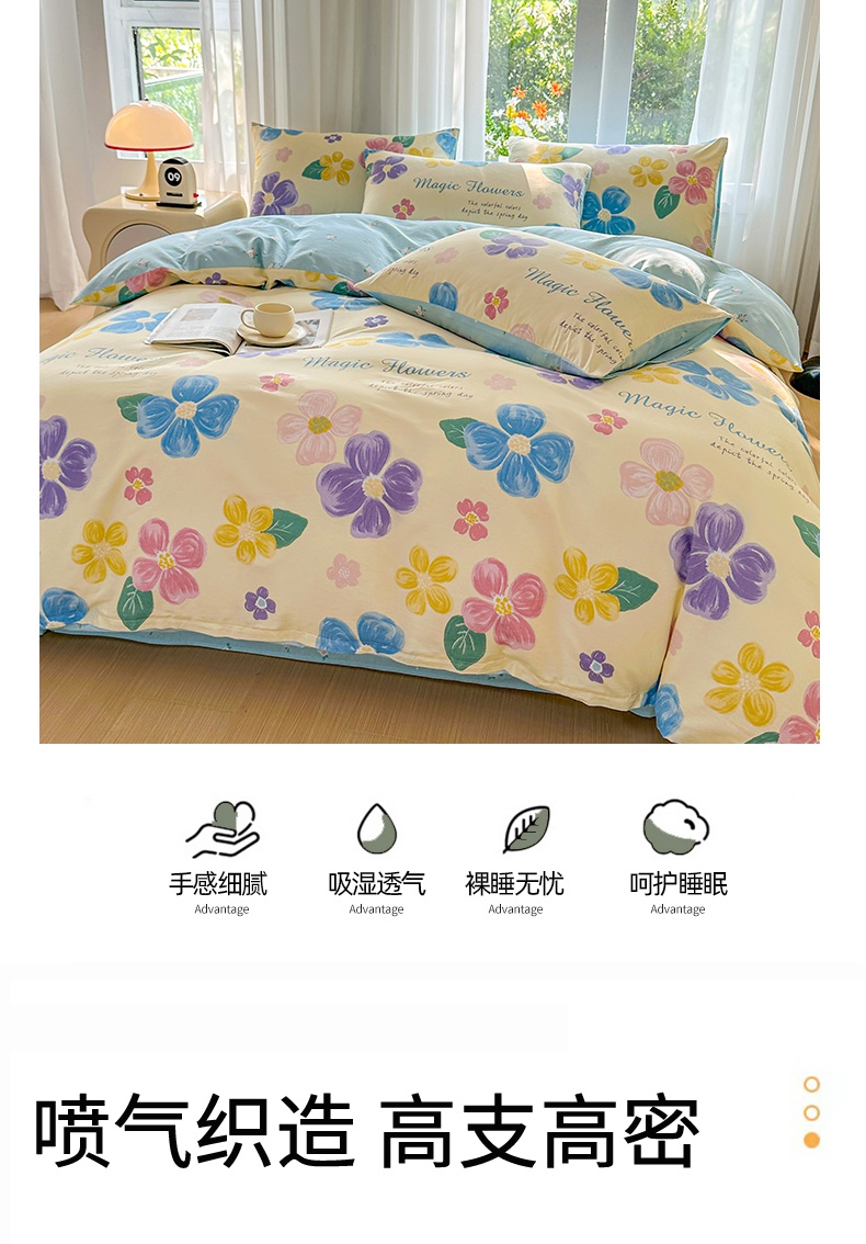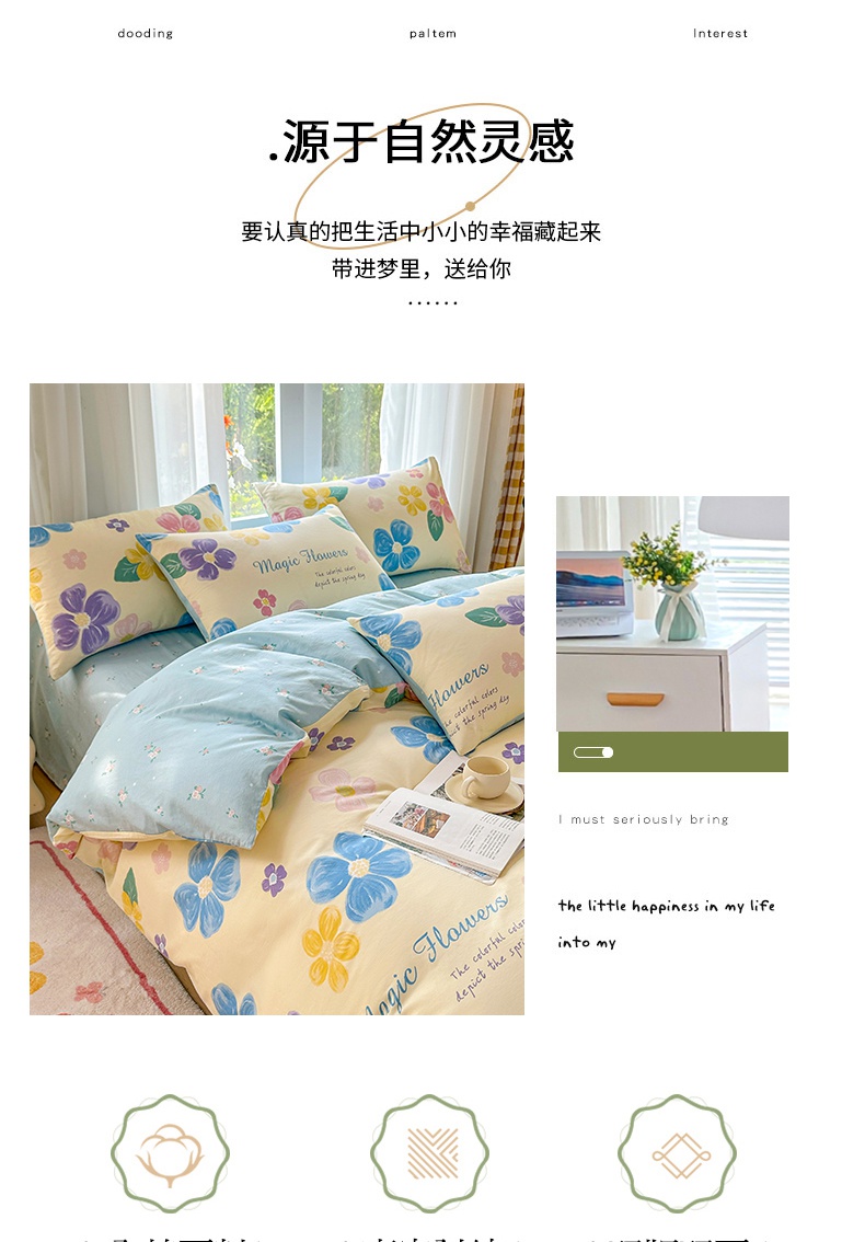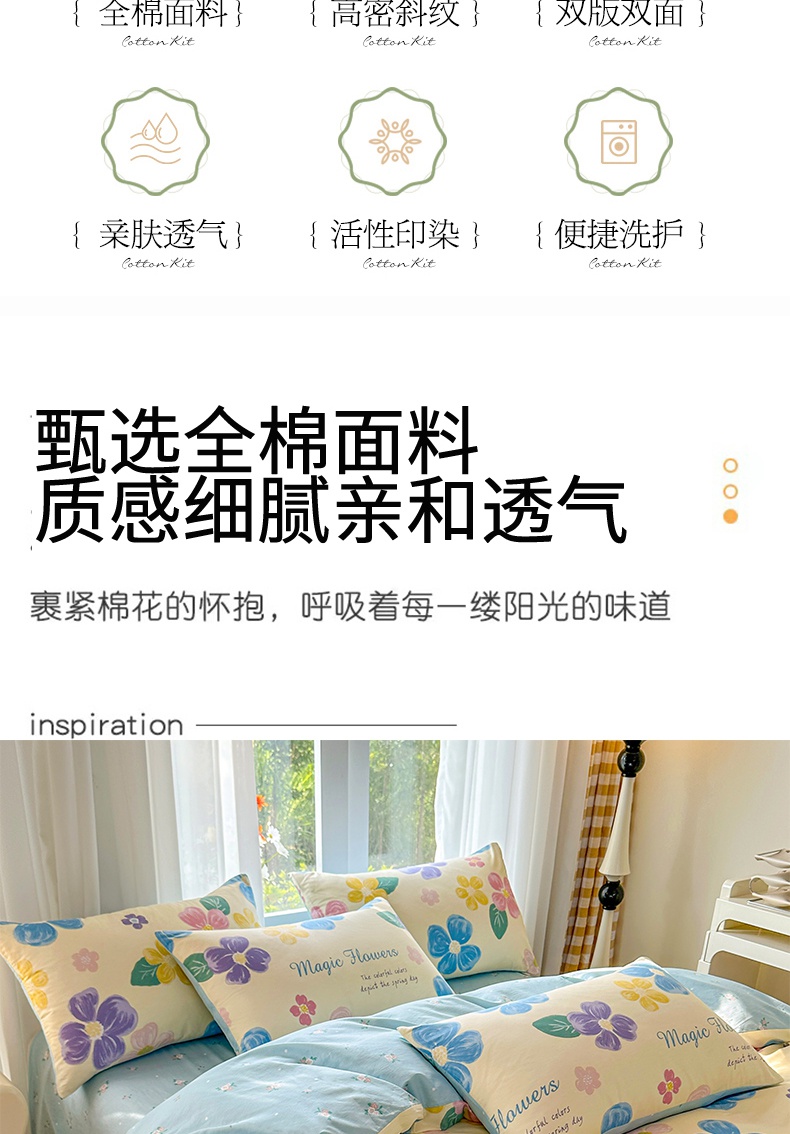 商品名称:宇彬家纺 2024直播新款13070全棉纯棉印花单双人被套喷气小清新简约热款学生被罩 花屿芷