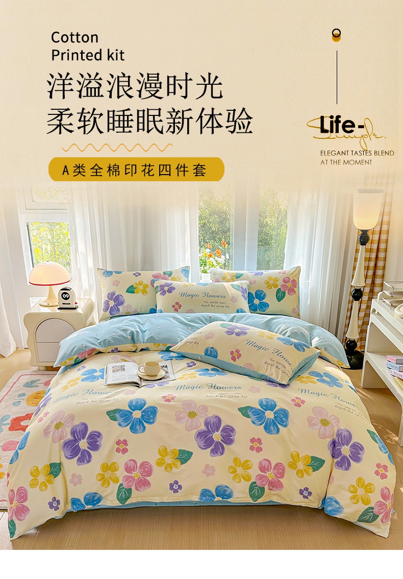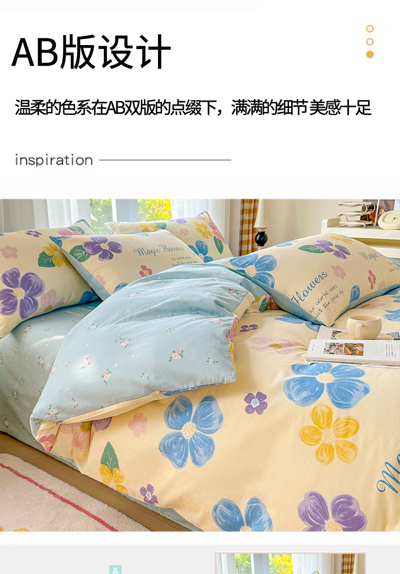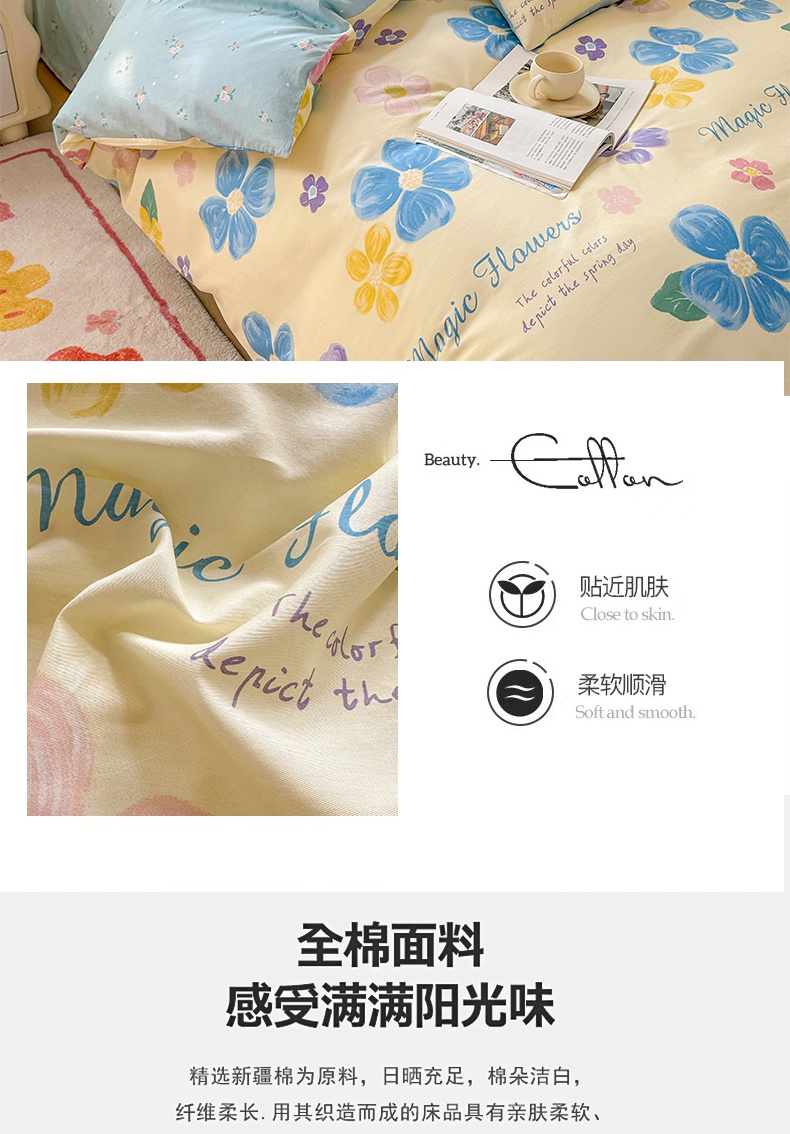 宇彬家纺 2024直播新款13070全棉纯棉印花单双人被套喷气小清新简约热款学生被罩 花屿芷