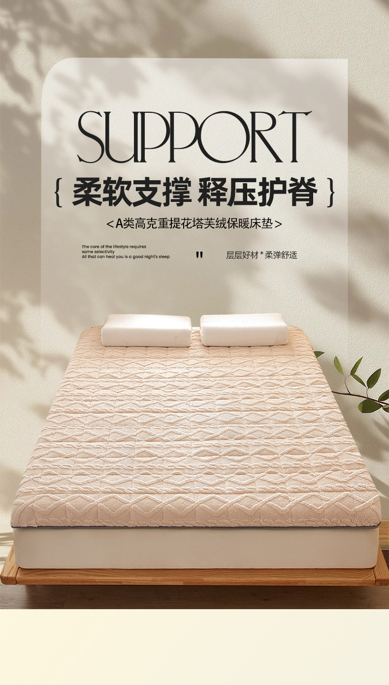 当前位置: 91家纺网 > 商品网购 > 床垫/床褥 > 普通床垫 > 2025新款A类高克重提花加厚塔芙绒床垫奶昔白