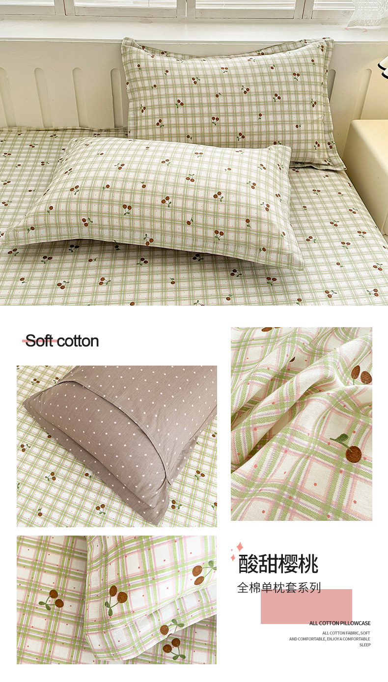 绵庭家纺 2025新款全棉印花单枕套系列 酸甜樱桃