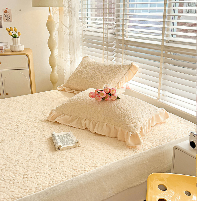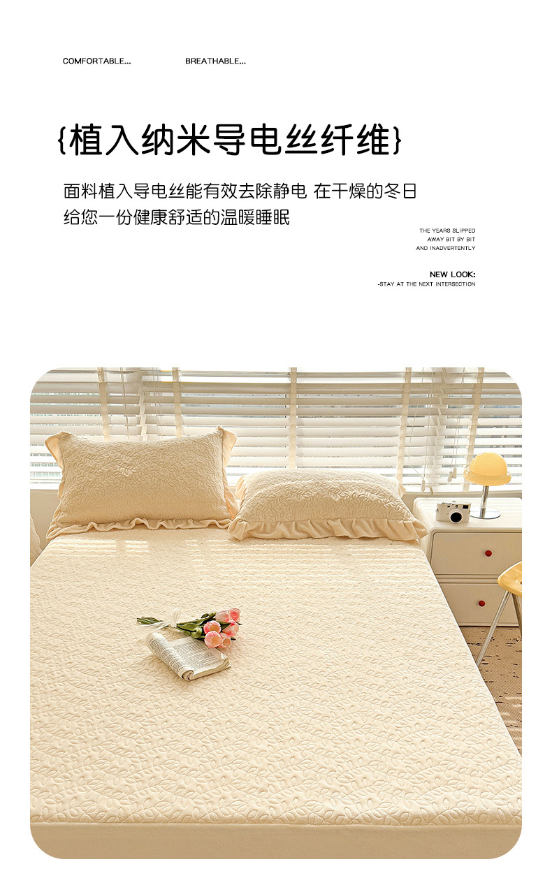 商品名称:漫时光 2025新款230g纯色牛奶绒夹棉床笠 床笠款罗曼-奶杏