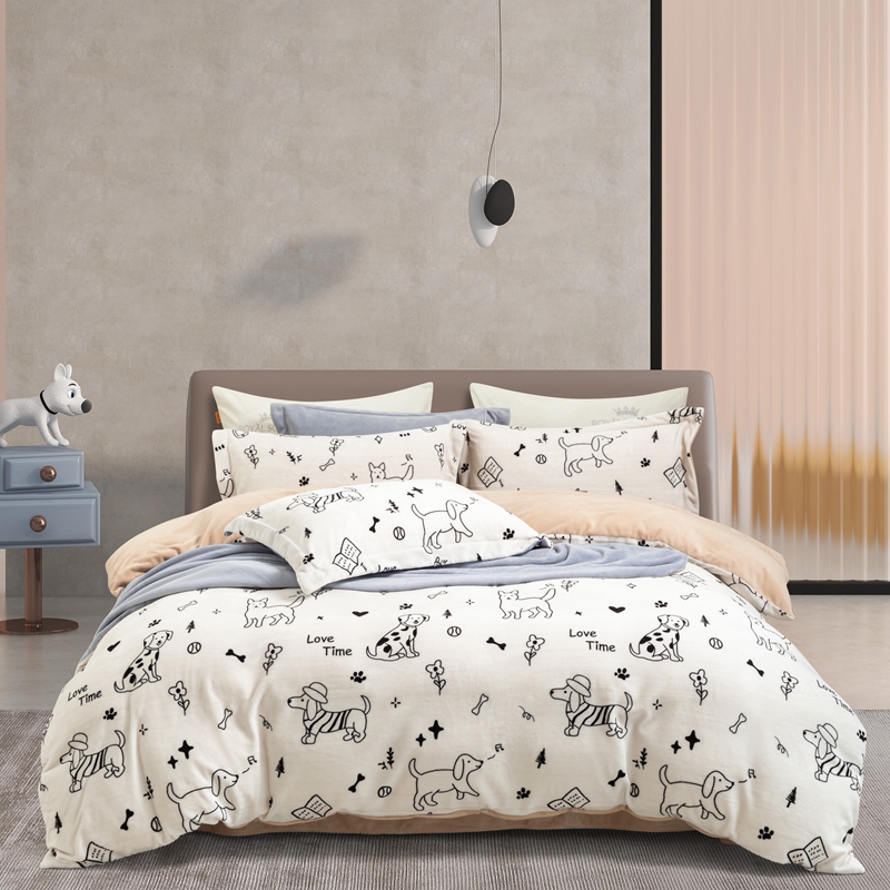 商品名称:宜家坊 2024新款加厚保暖印花牛奶绒四件套 休闲狗狗