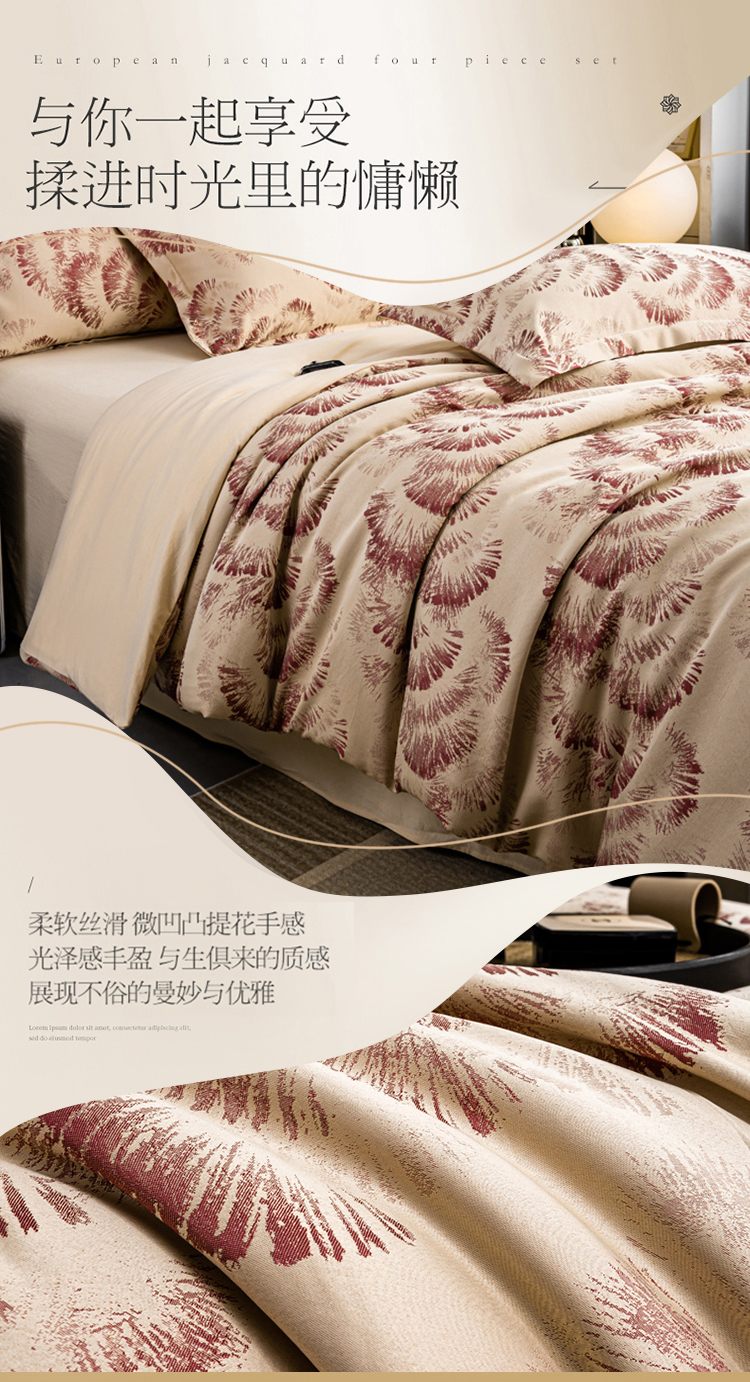 (总)莱欧纳家纺 2025新款质感多色提花四件套,克罗花雨,忆嘉南