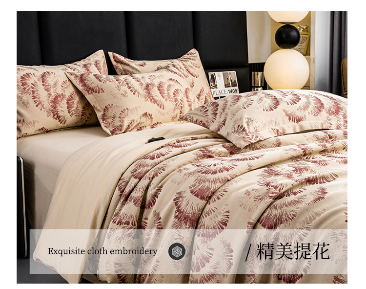 (总)莱欧纳家纺 2025新款提花夏被四件套,豆沙,灰色,香槟,紫色