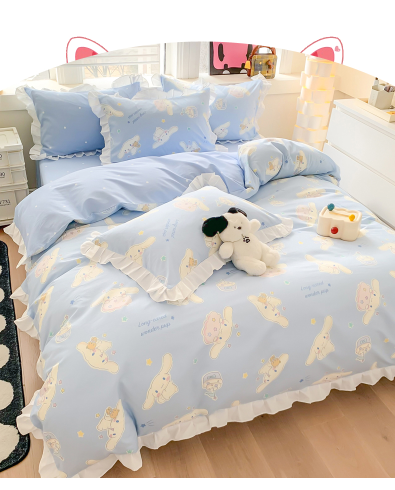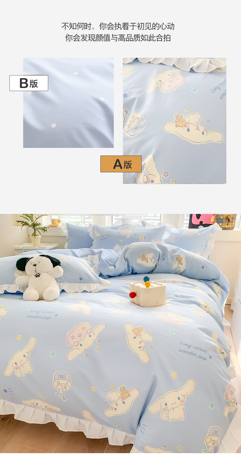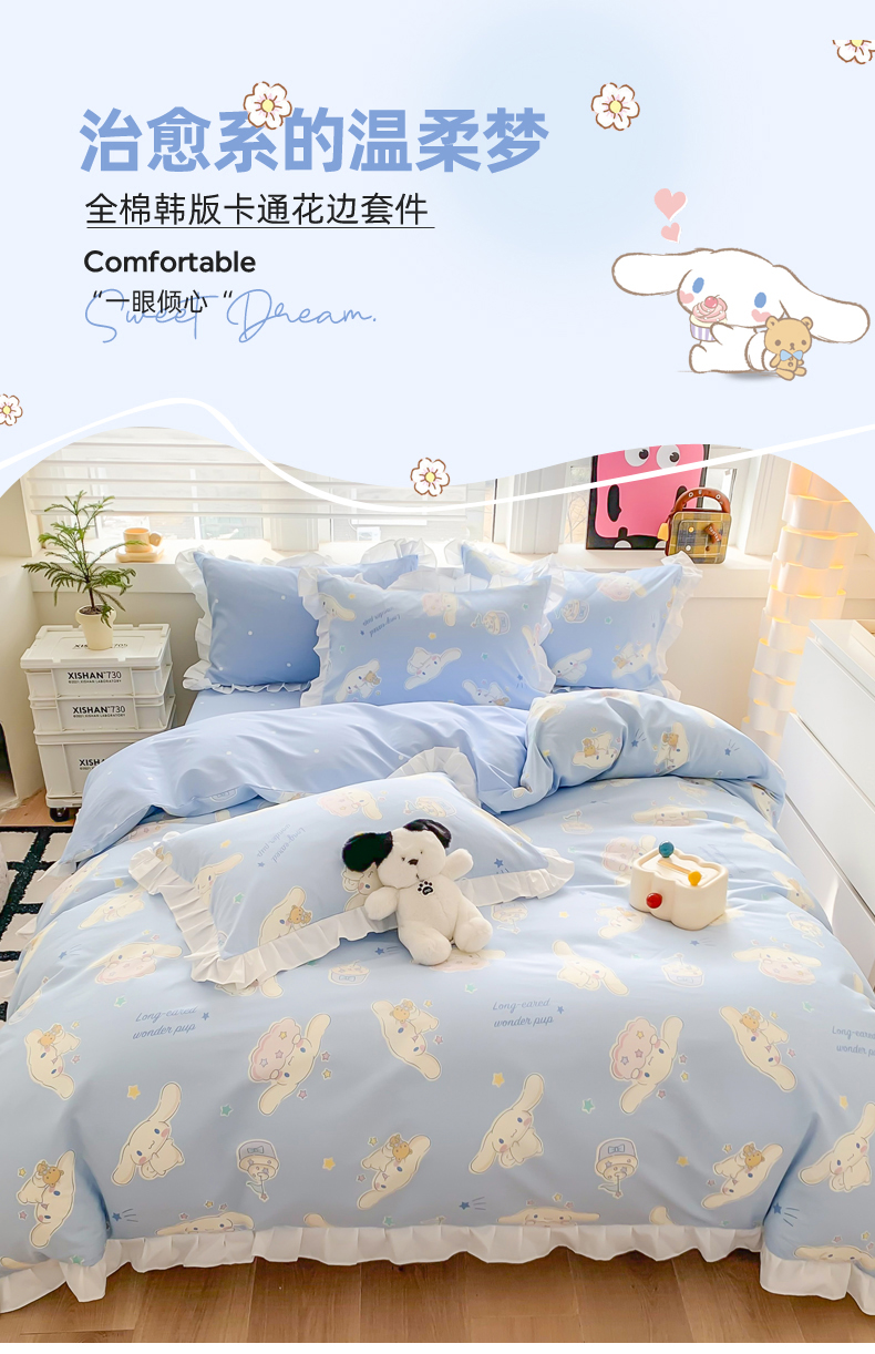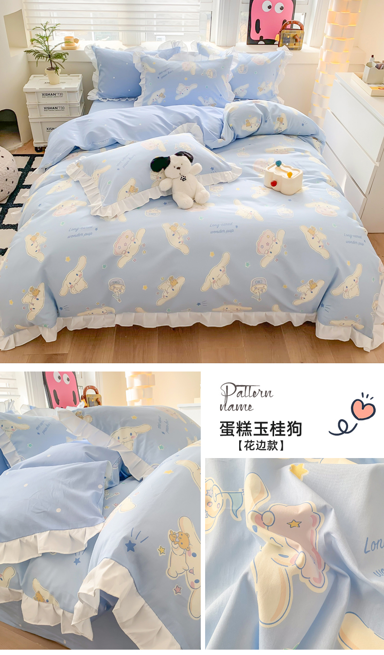 当前位置: 91家纺网 > 商品网购 > 床品套件 > 四件套 > 全棉普通四件套 > 玉元坊 2025新款三丽鸥系列白花边被套纯棉全棉床裙三件套四件套-大耳狗白花边款式 花边款-蛋糕玉桂狗