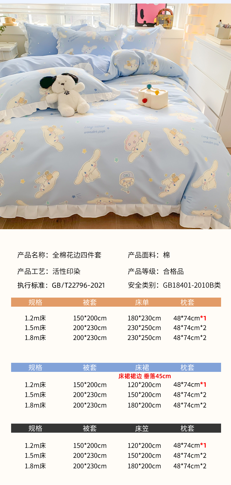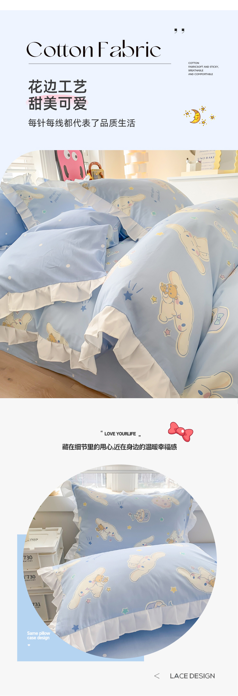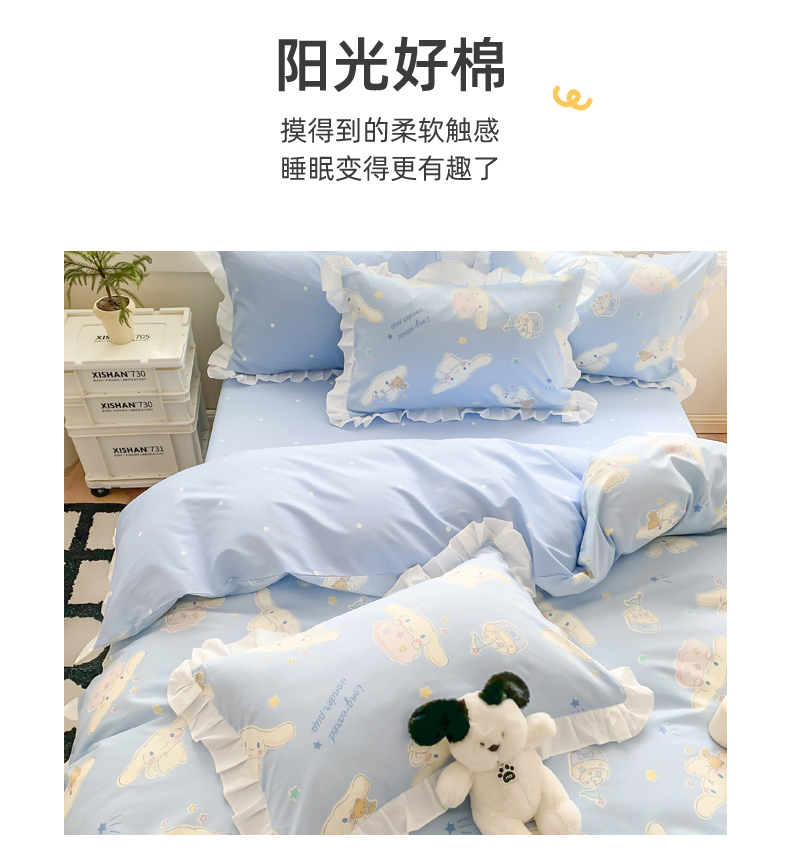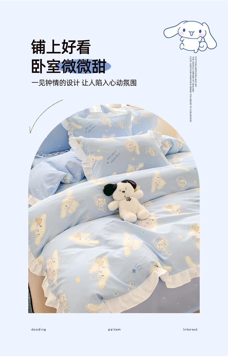 当前位置: 91家纺网 > 商品网购 > 床品套件 > 四件套 > 全棉普通四件套 > 玉元坊 2025新款三丽鸥系列白花边被套纯棉全棉床裙三件套四件套-大耳狗白花边款式 花边款-蛋糕玉桂狗