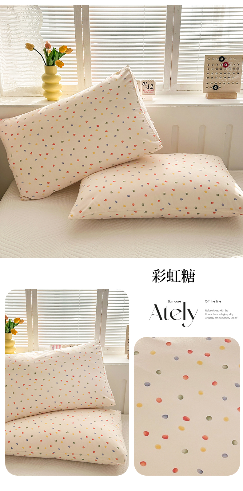 商品名称:多品家纺 2025新款花卉系列超柔水洗棉枕套 彩虹糖