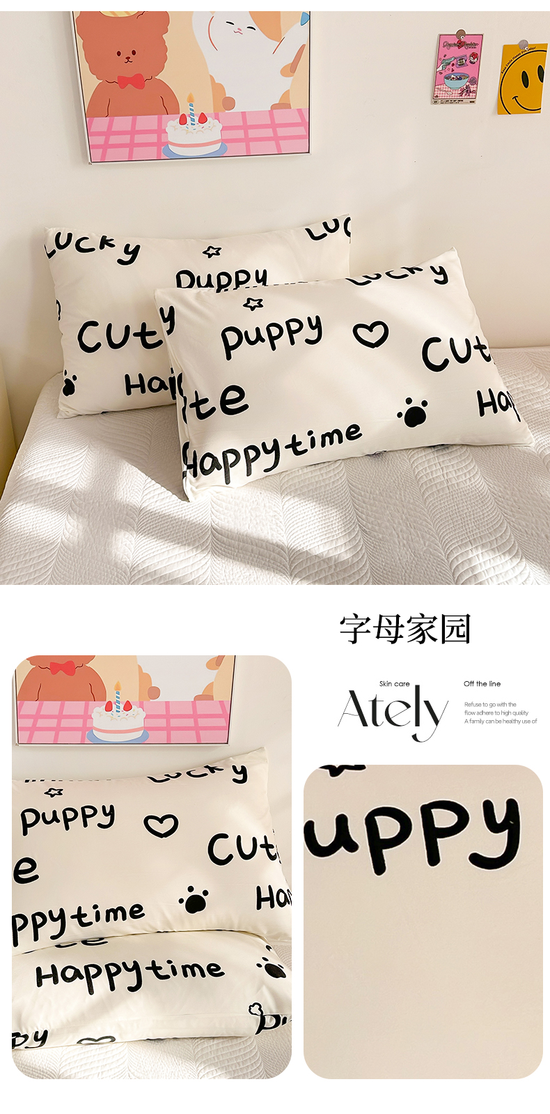 多品家纺 2025新款卡通系列柔水洗棉枕套 字母家园