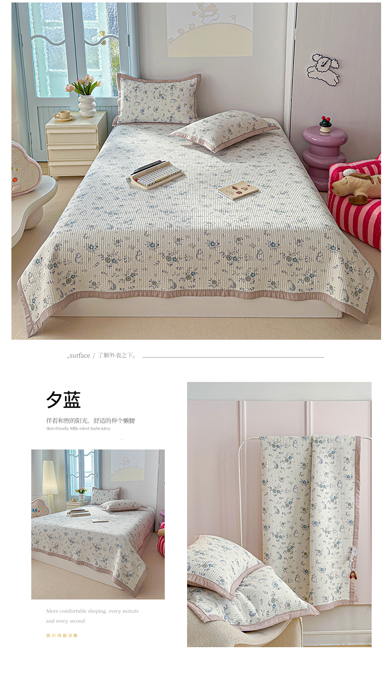 商品名称:源舜家纺 2025新款无弹针织棉床盖三件套 夕蓝