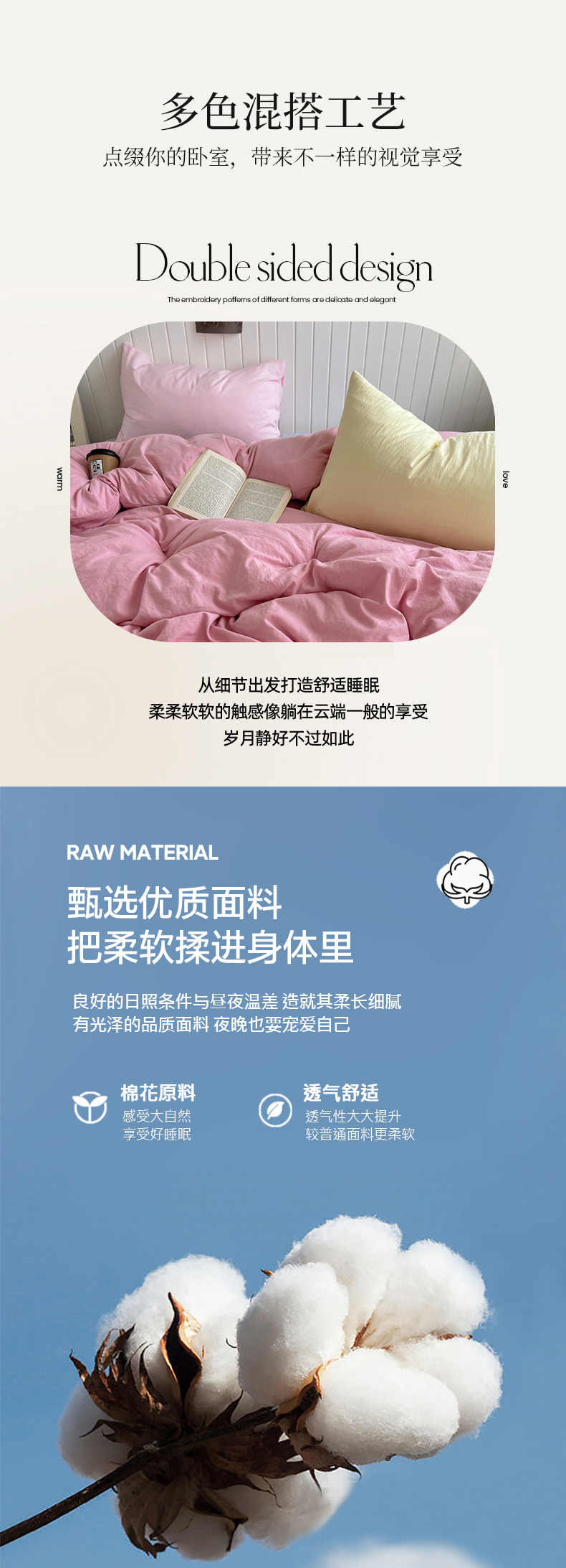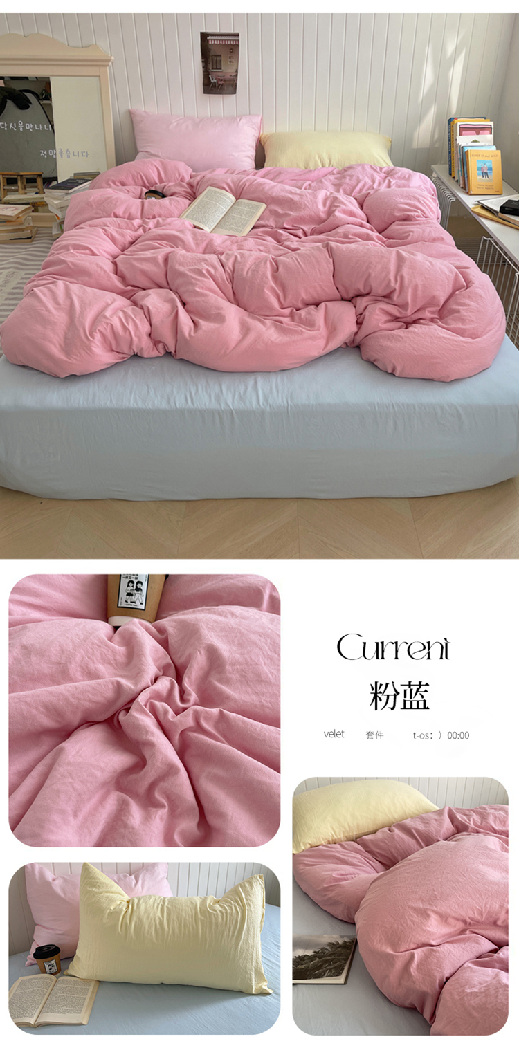 当前位置: 91家纺网 > 商品网购 > 床品套件 > 四件套 > 其它四件套 > 2025新款ins博主风纯色混搭双色水洗m四件套(软糯舒适,非市场普通面料!!!) 多色水洗m-粉蓝