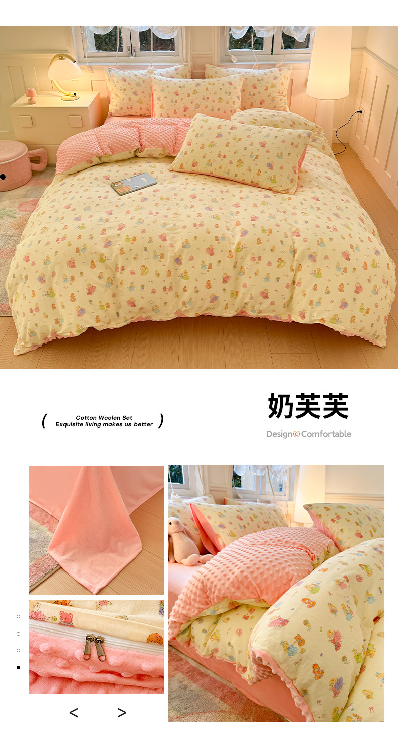 千朵 2025新款豆豆绒双层纱四件套 奶芙芙