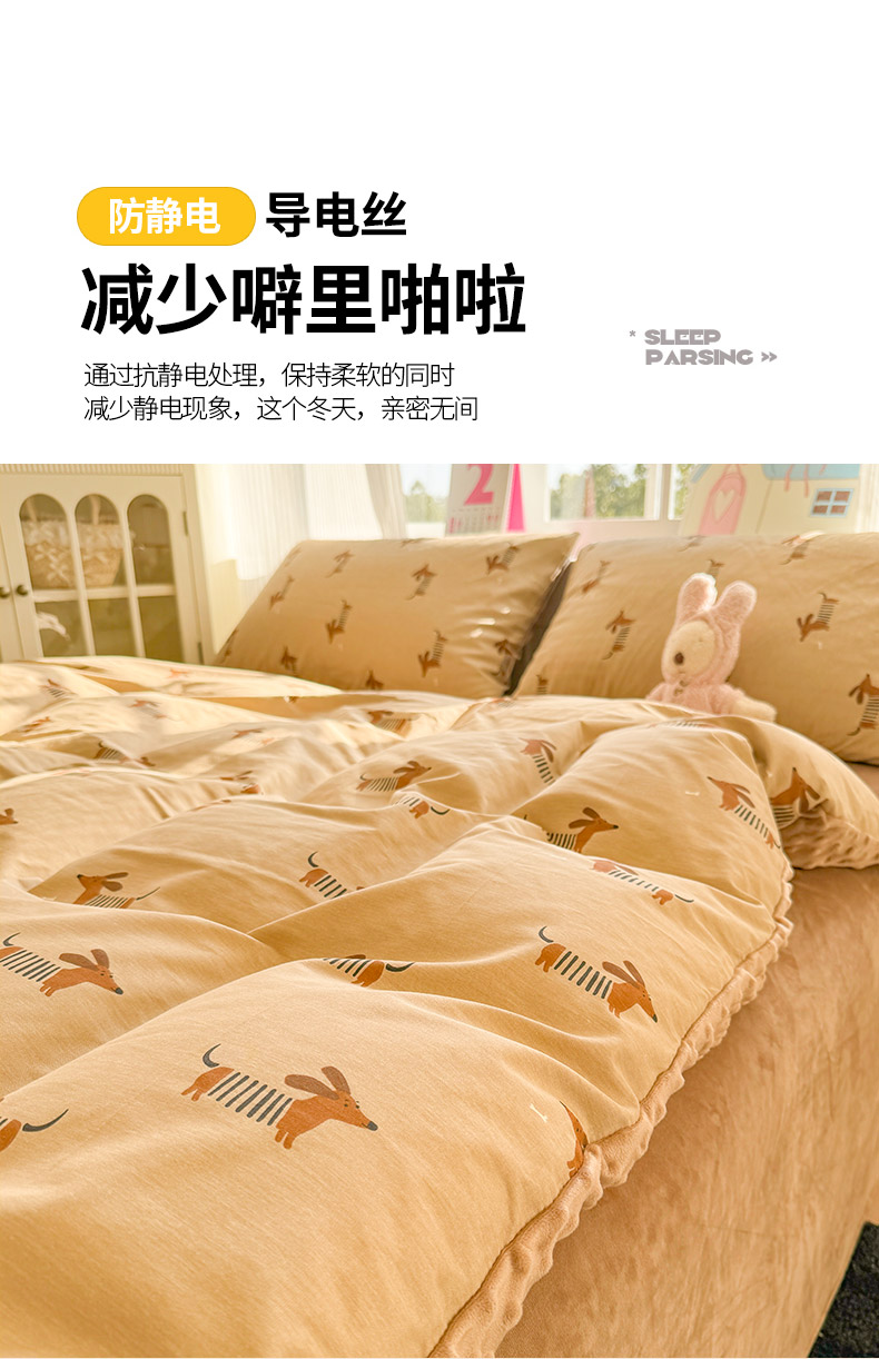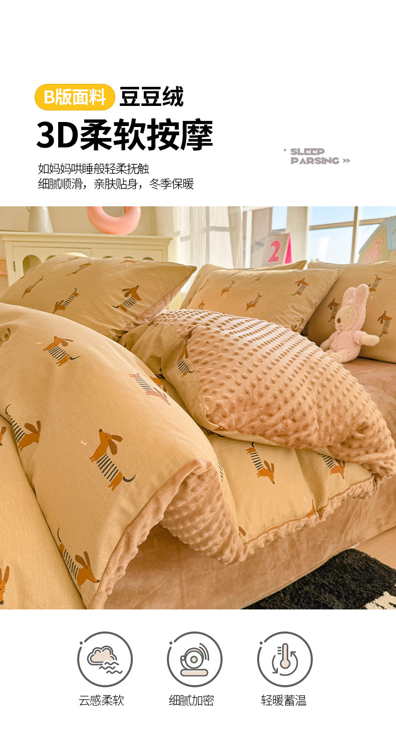 商品名称:千朵 2025新款全棉加豆豆绒四件套 蜡肠狗
