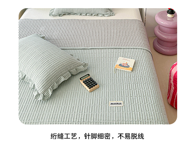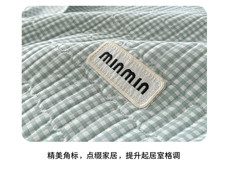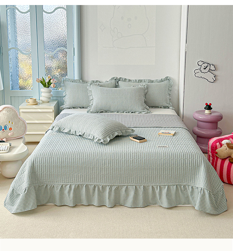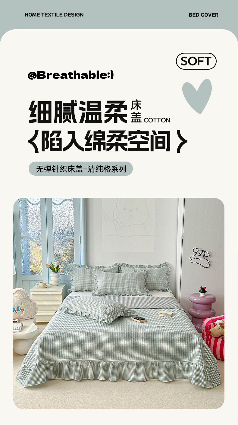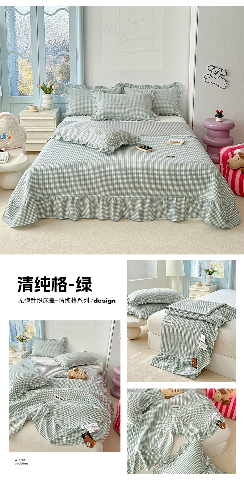 商品名称:源舜家纺 2025新款无弹针织棉床盖三件套-清纯格 清纯格-绿