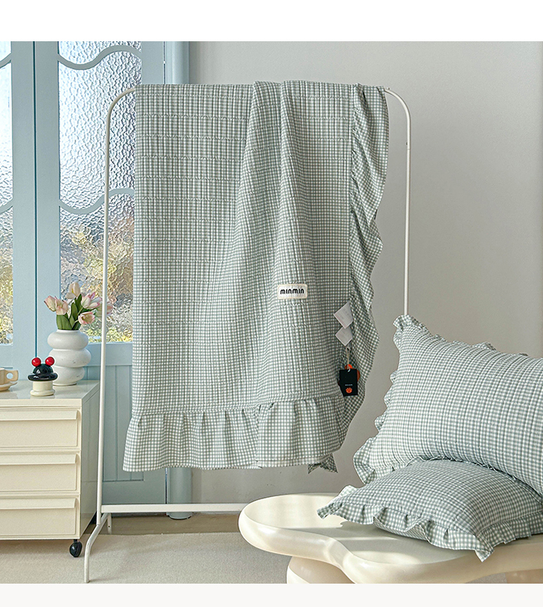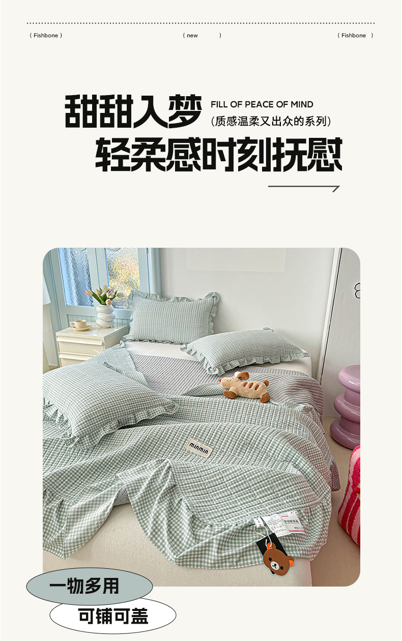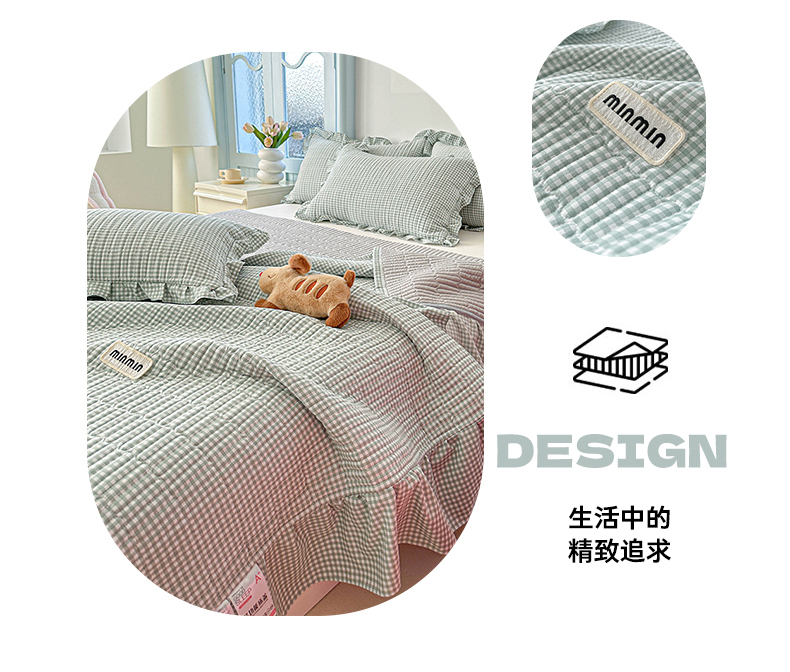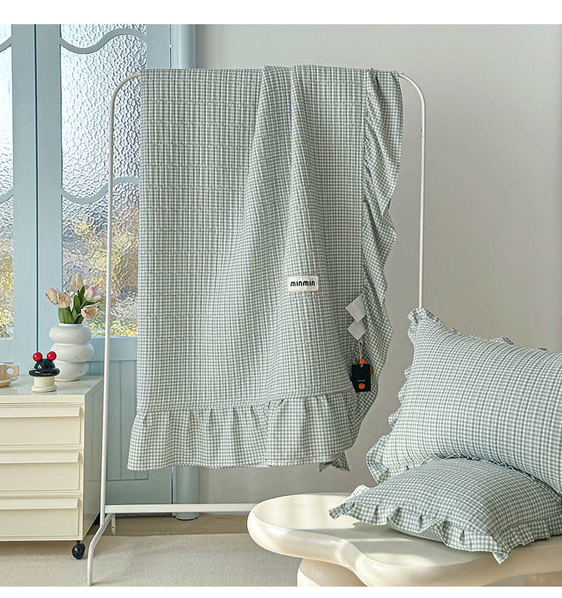 (总)源舜家纺2025新款色织水洗棉全棉法式花边款床盖,色织粉格,色织黄格,色织灰白格,色织灰咖格,色织蓝格,色织绿格,色织深蓝格