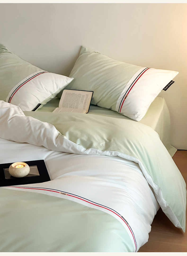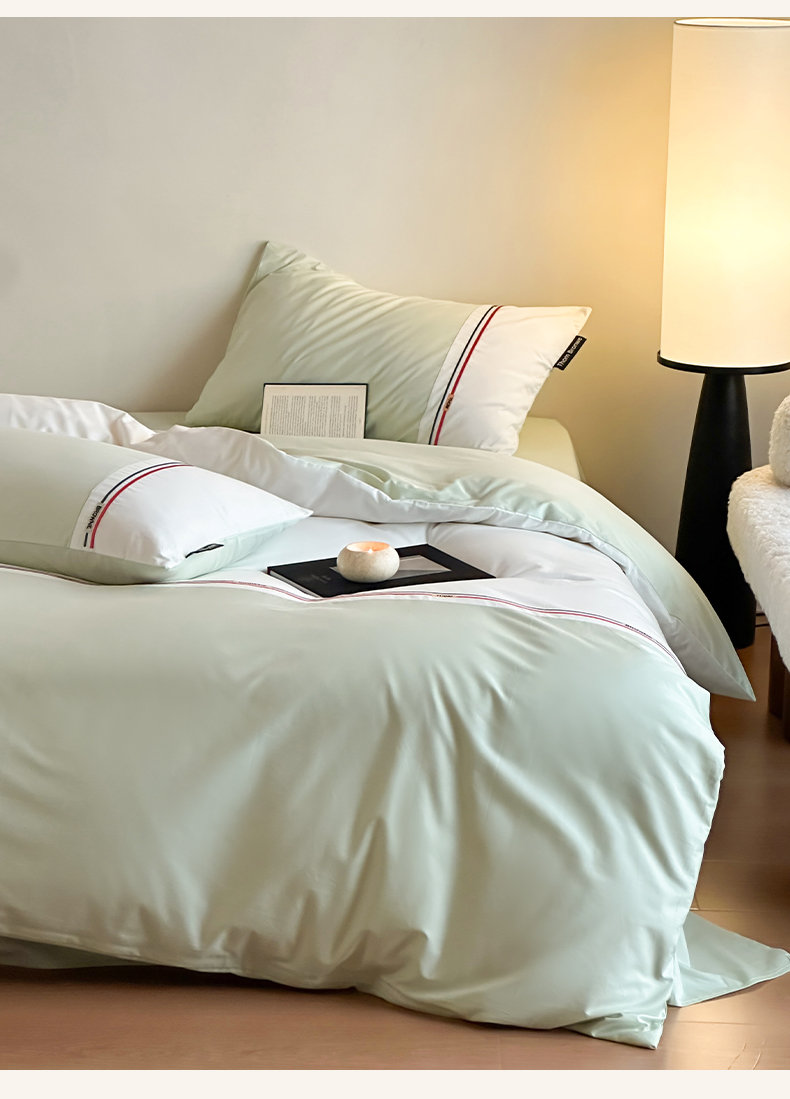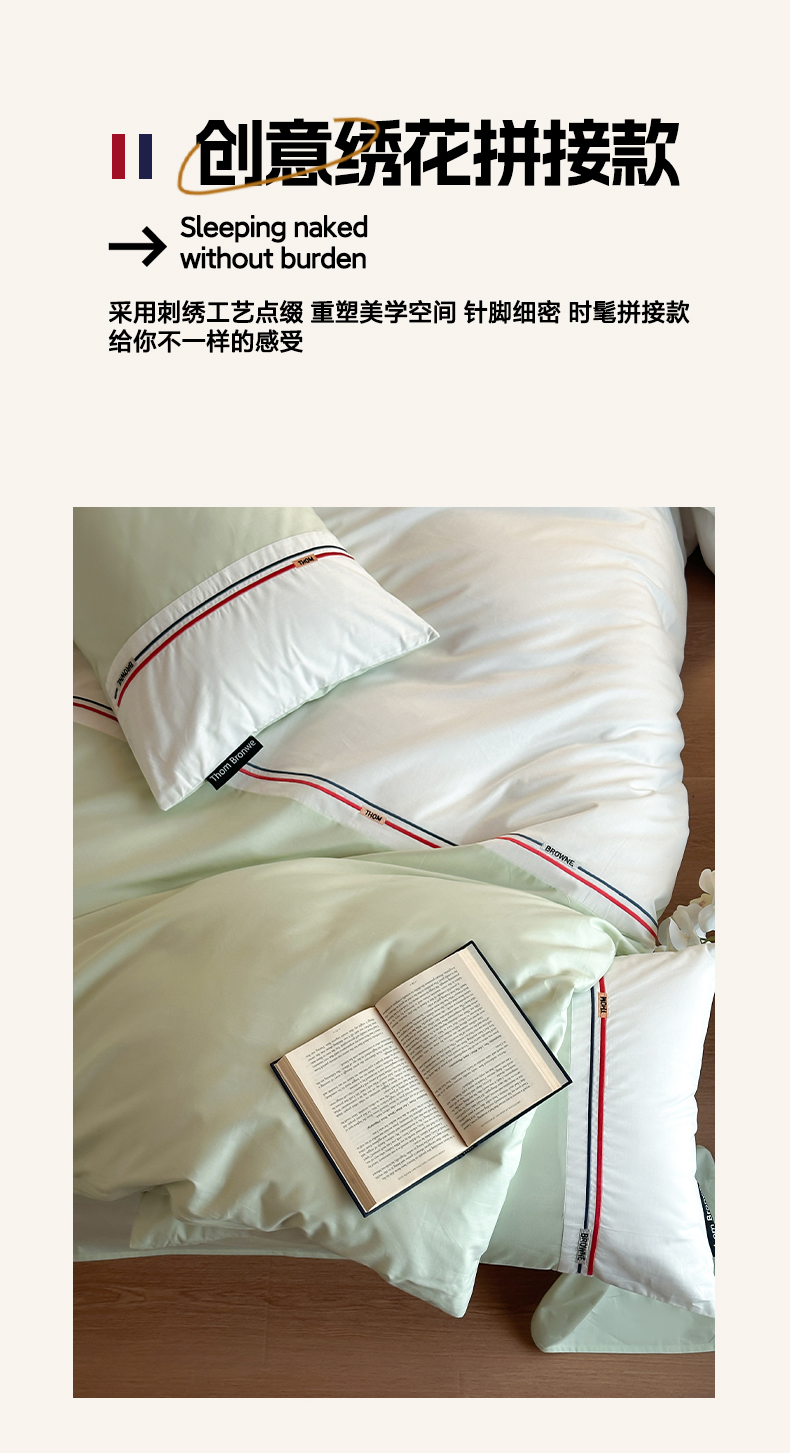 卡巴伦家纺 2025新款全棉A类绣花拼接款四件套-布朗 布朗-青草绿
