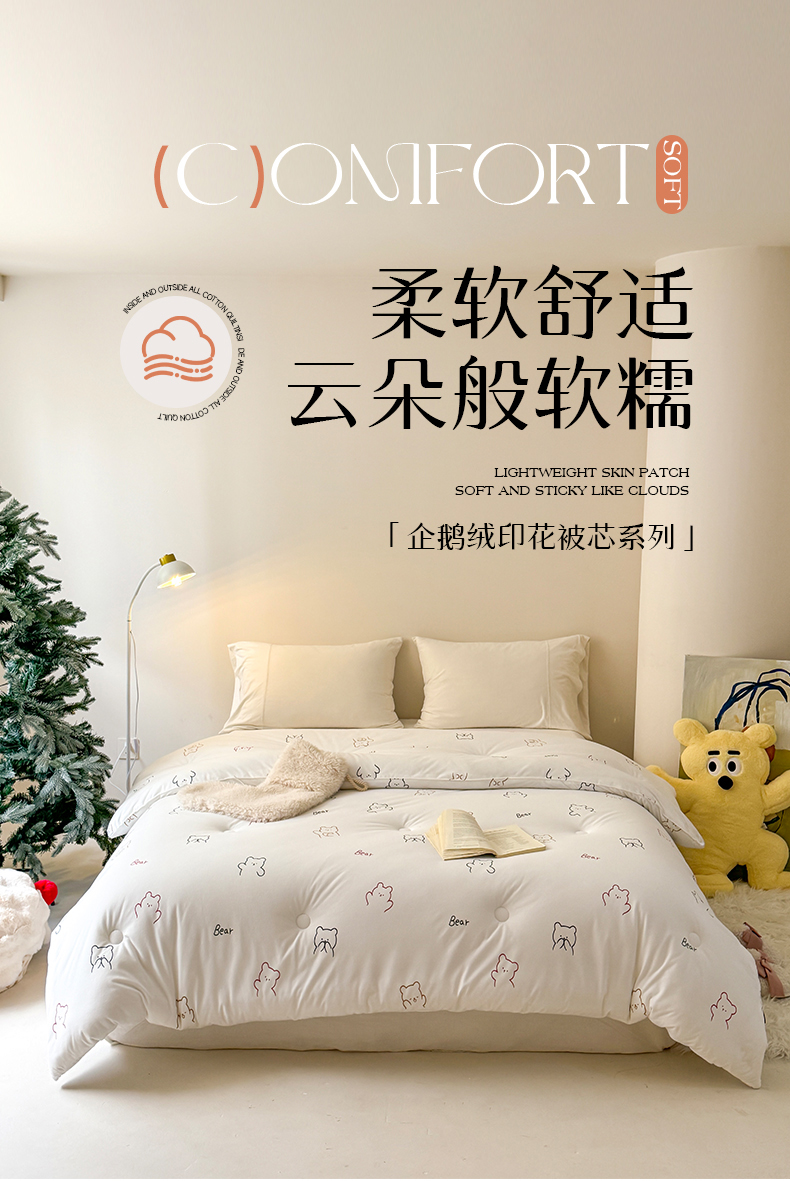 亿莱鑫 2025新款企鹅绒印花被子被芯春秋被冬被 小熊