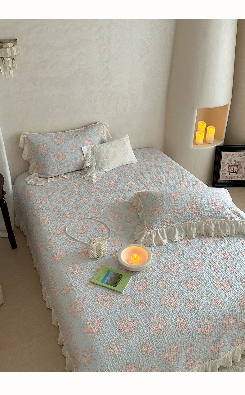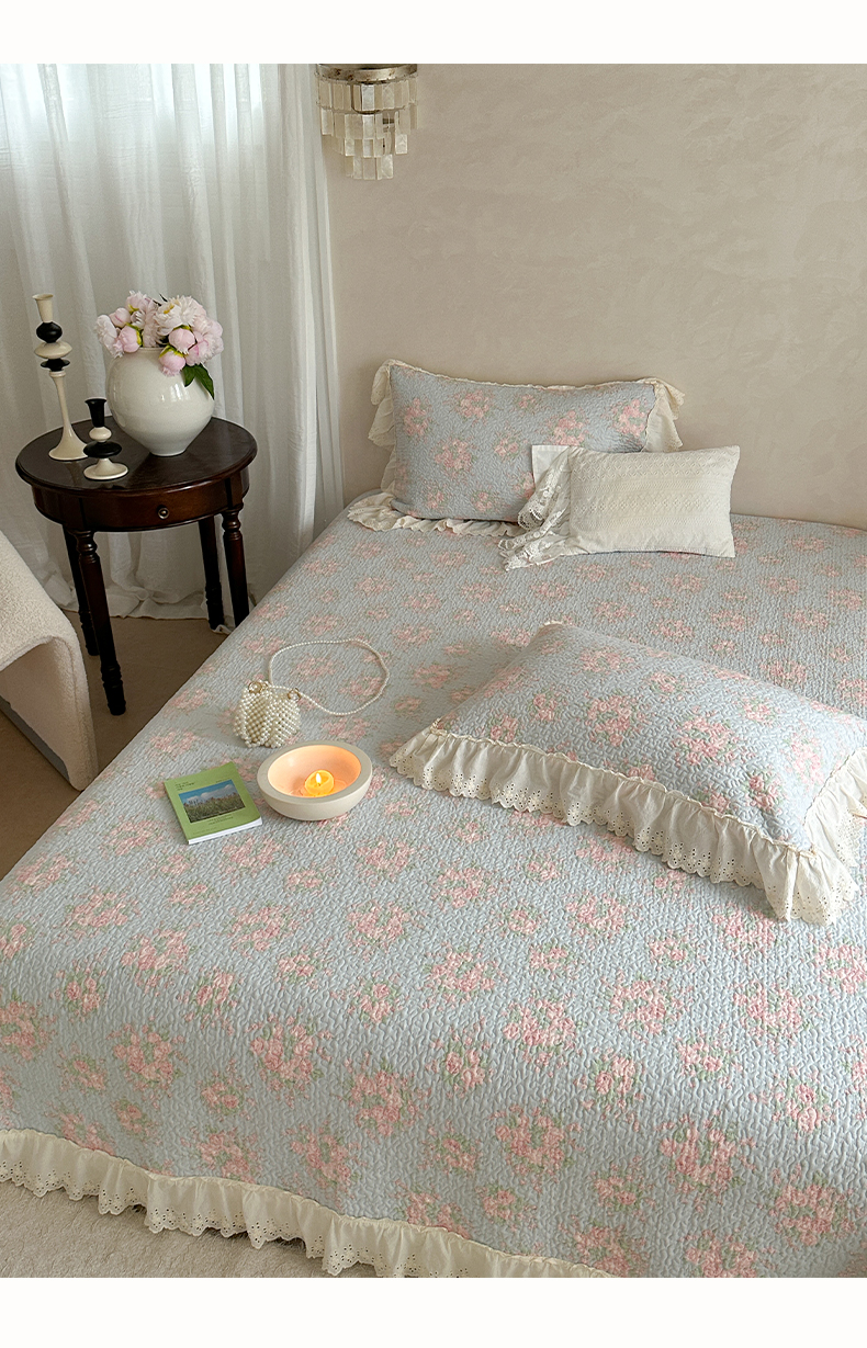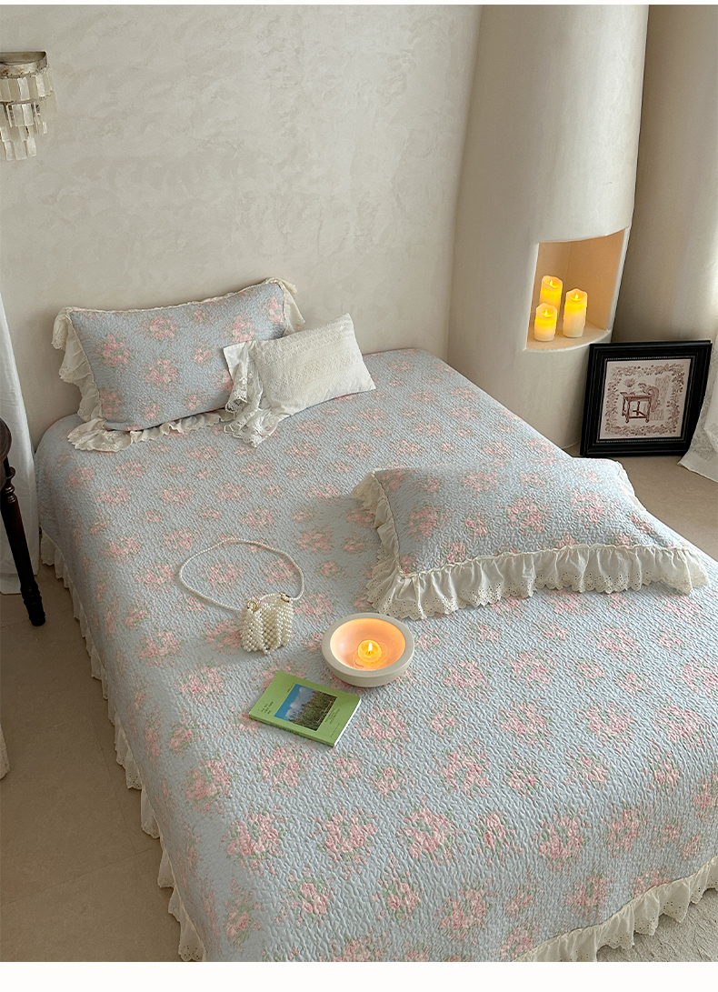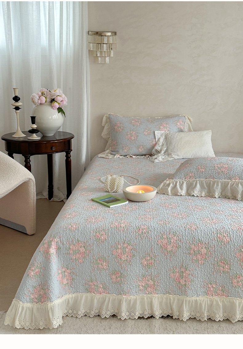 当前位置: 91家纺网 > 商品网购 > 床上用品 > 床盖 > 2025新款法式花边印花款全棉双层纱床盖三件套 欧月花影