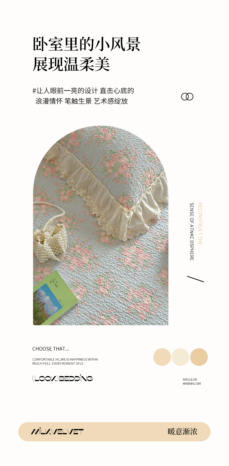 (总)琳可家居 2026新款60S长绒棉花边床盖A类双面全棉高温水洗-蝶恋系列,蝶恋-暖白,蝶恋-卡其,蝶恋-雾粉,组合